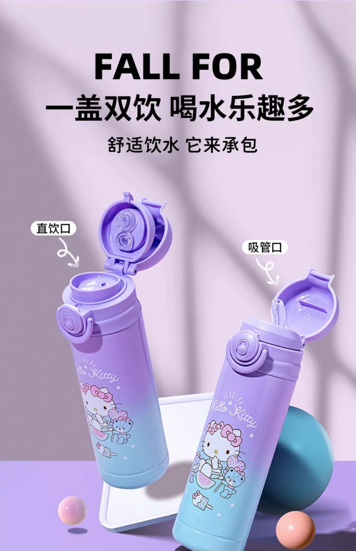 Sanrio 대용량 어린이 보온병 컵 밀짚 귀여운 고가치 한 뚜껑 이중 목적 학교 주전자 도매