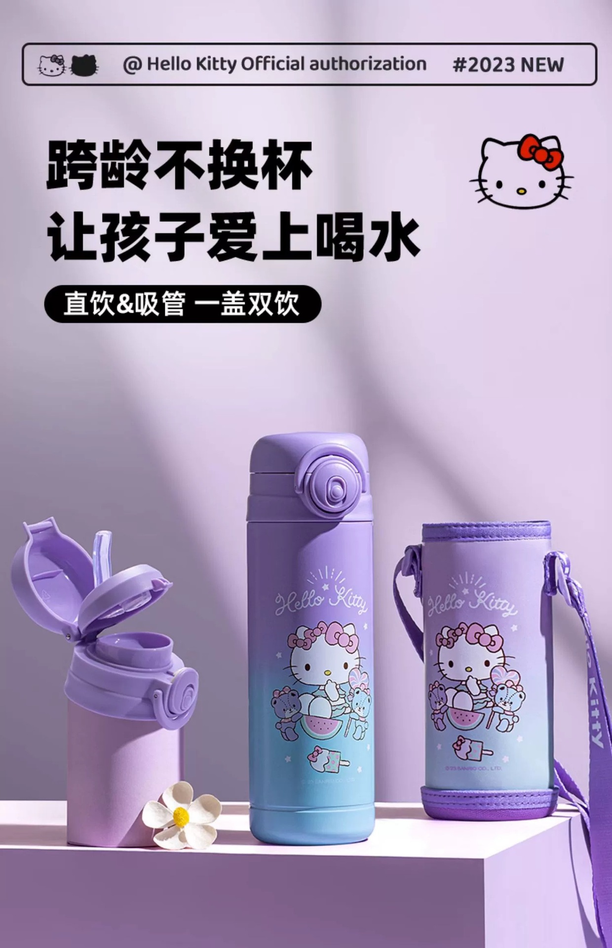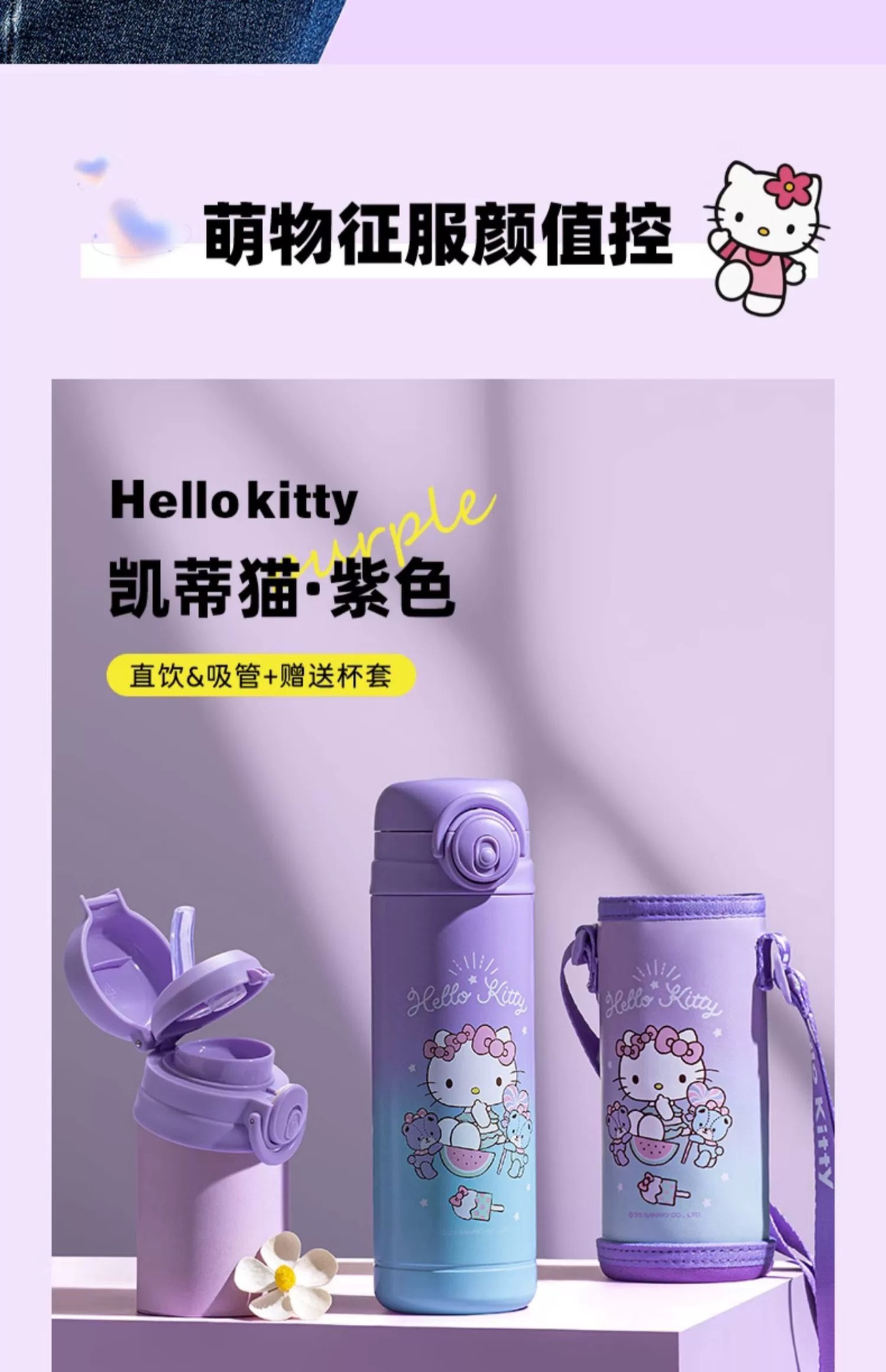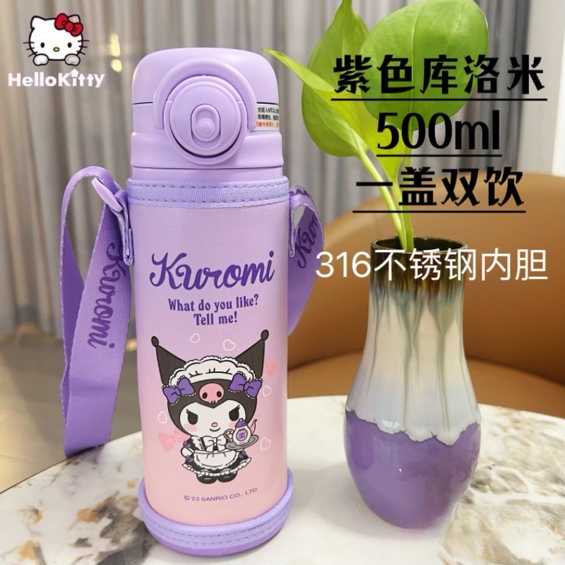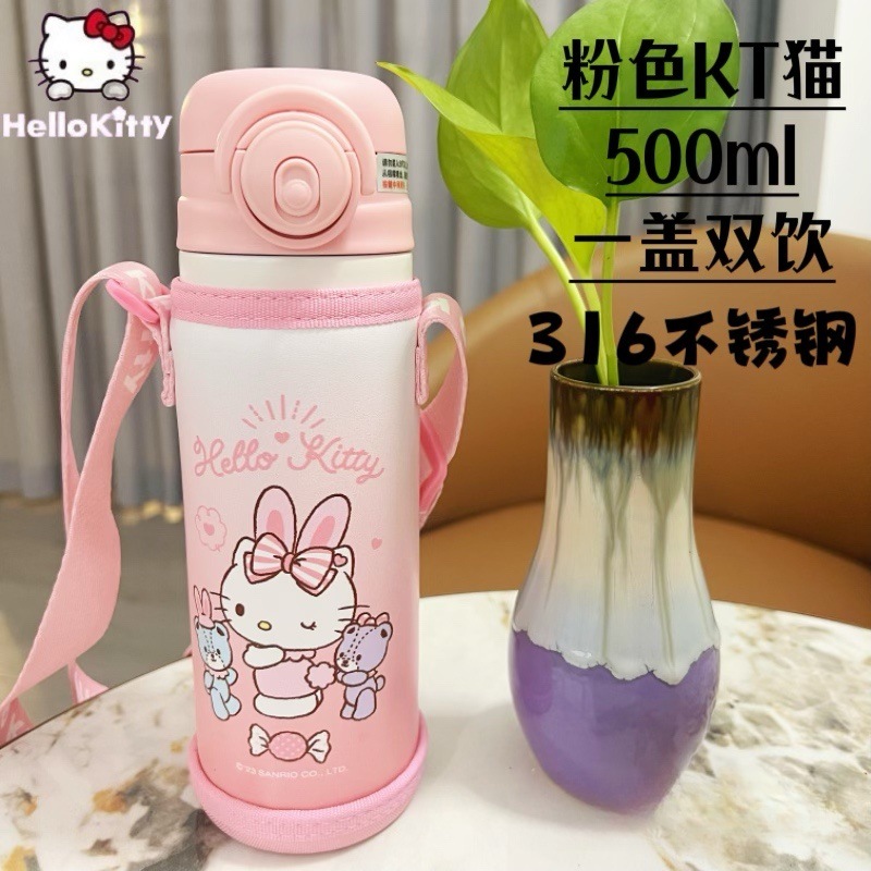 Sanrio 대용량 어린이 보온병 컵 밀짚 귀여운 고가치 한 뚜껑 이중 목적 학교 주전자 도매스토어 가기