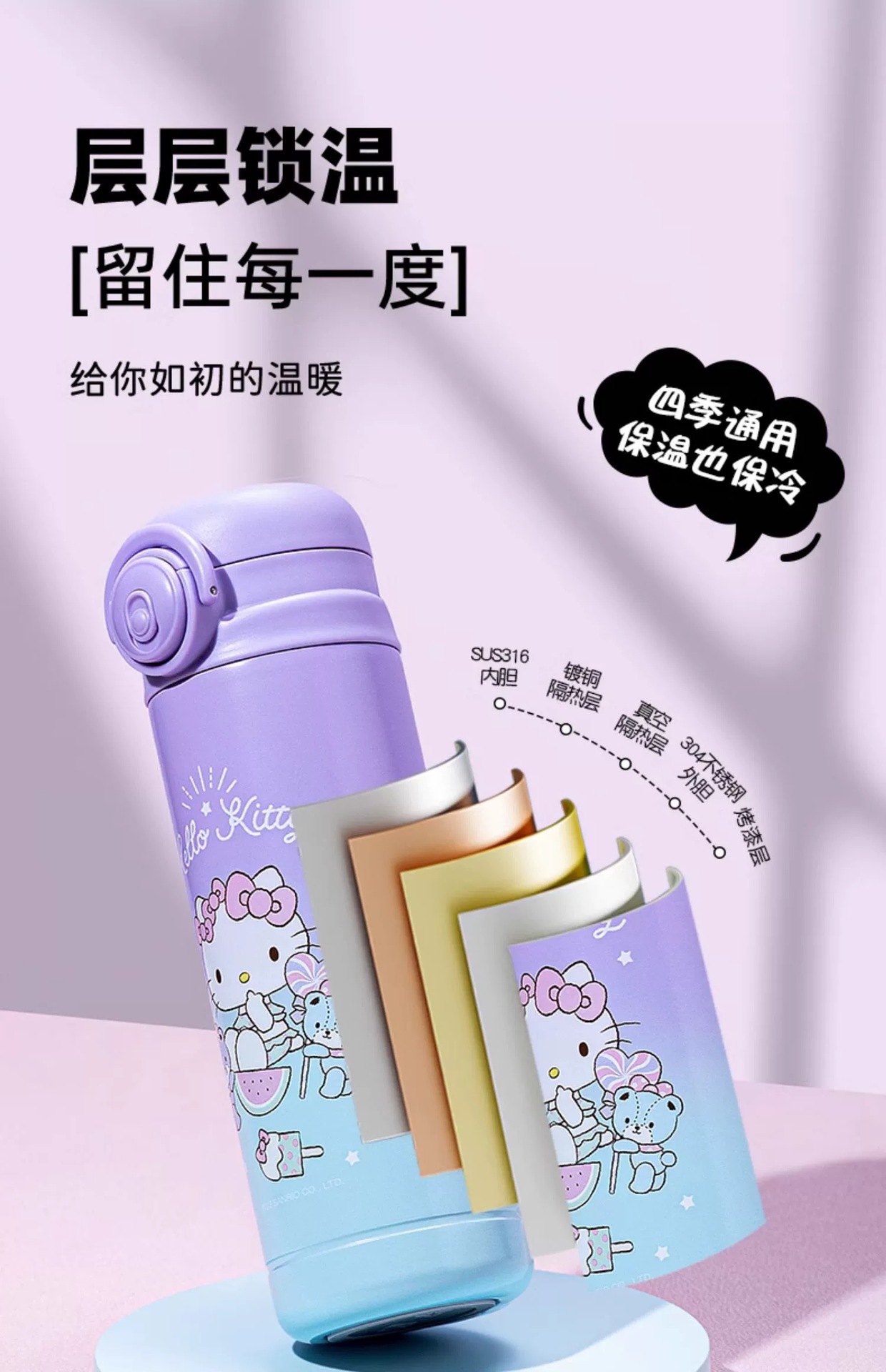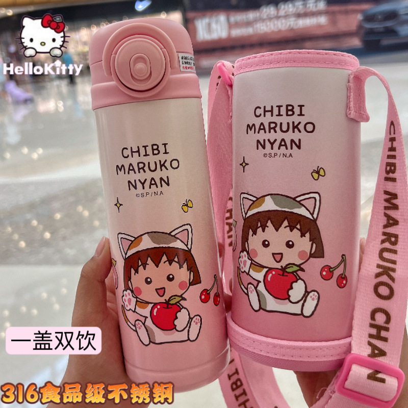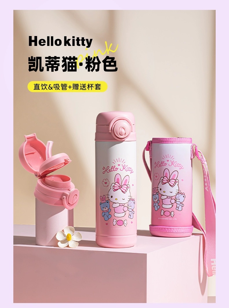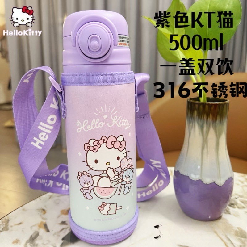 Sanrio 대용량 어린이 보온병 컵 밀짚 귀여운 고가치 한 뚜껑 이중 목적 학교 주전자 도매스토어 가기
