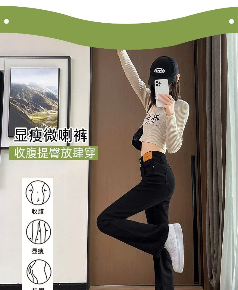 마이크로 라 진 여성용 여름 얇은 2023 새로운 하이 웨이스트 슬리밍 9 점 스몰 블랙 트럼펫 팬츠스토어 가기