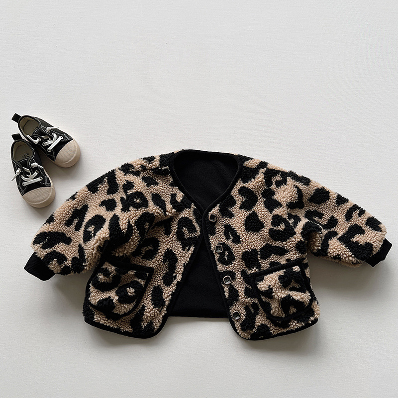 어린이 레오파드 프린트 플러시 코트 2025 겨울 두꺼운 보온 일본 및 한국 스타일 아동복 남녀 공용 개성 코트스토어 가기
