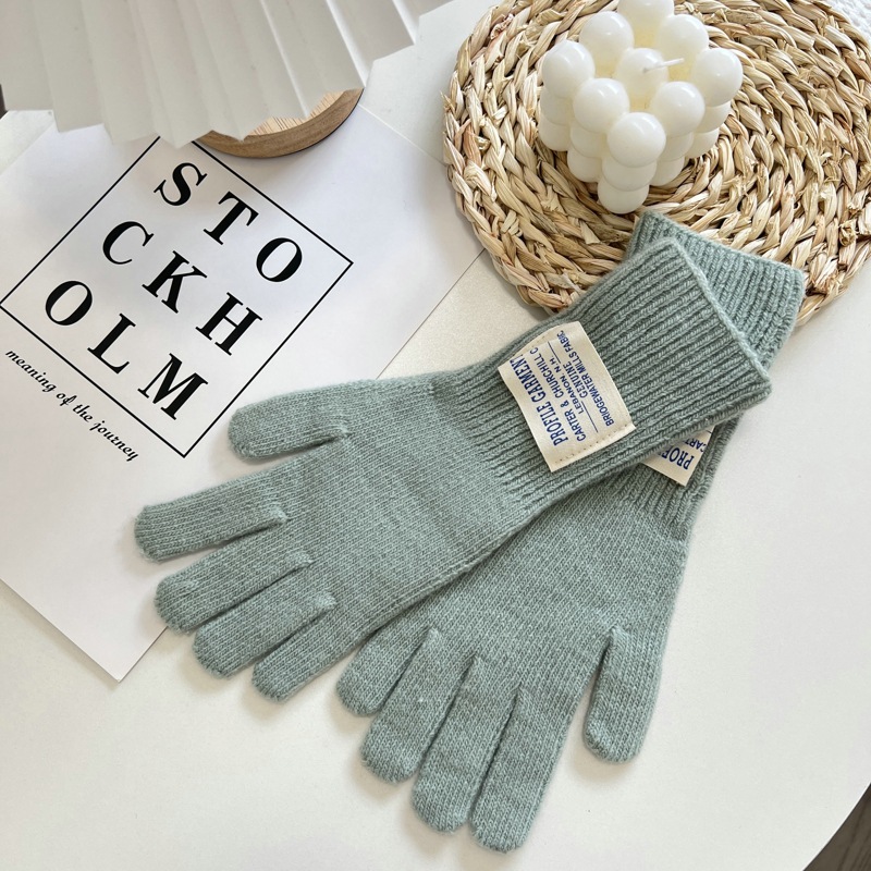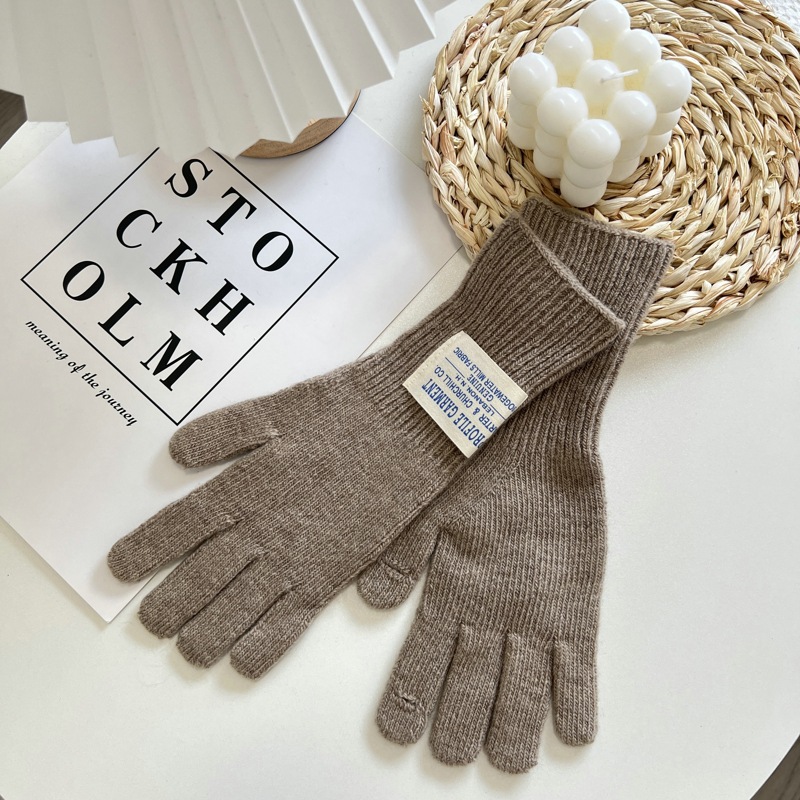 한국식 모든 경기 야외 따뜻한 다섯 손가락 단색 니트 터치 스크린 손가락 누출 천 라벨 장갑 학생 장갑 여성 가을과 겨울