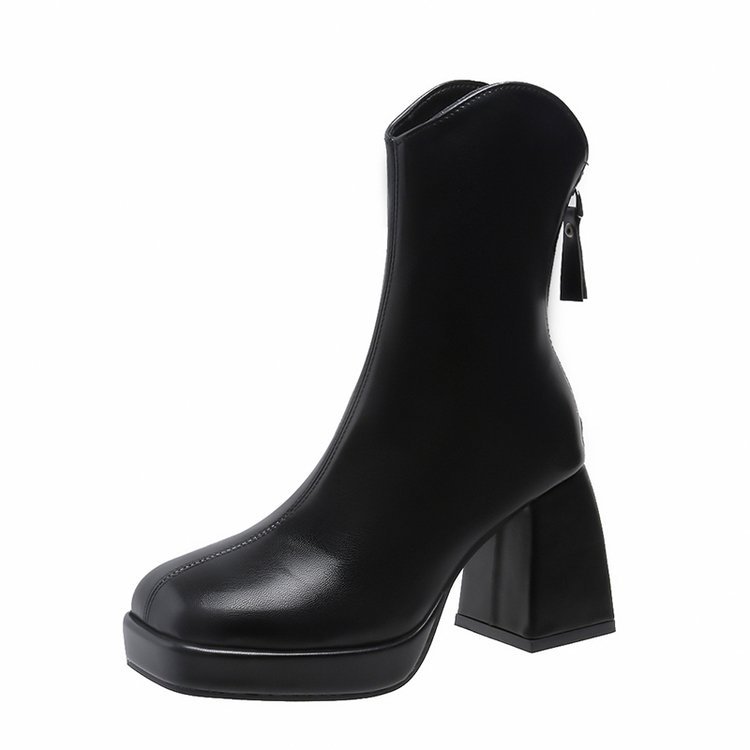 V-입 짧은 부츠 여성용 2023 가을과 겨울 새로운 두꺼운 굽 방수 플랫폼 스퀘어 토 마틴 부츠 여성용 미들 힐 백 지퍼 부츠스토어 가기