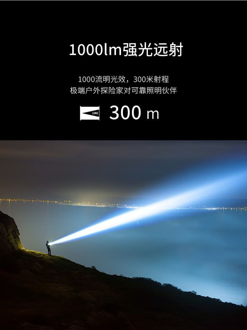 • 단일 리튬 배터리 패키지 (XHP50 램프 구슬/배터리 수명 8-15h/줌/전원 디스플레이/TYPE-C 충전)