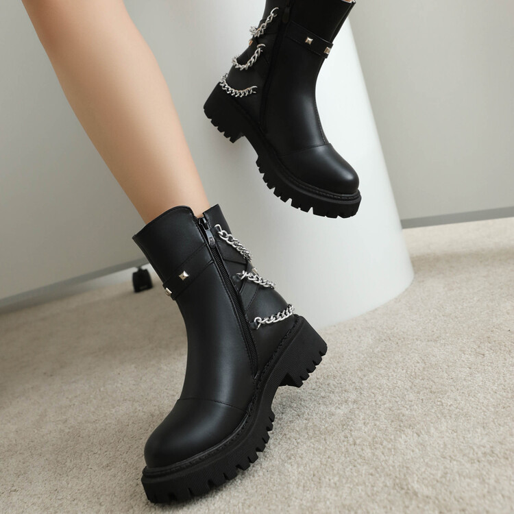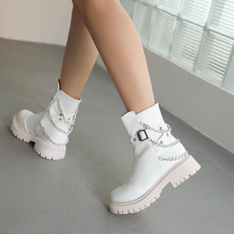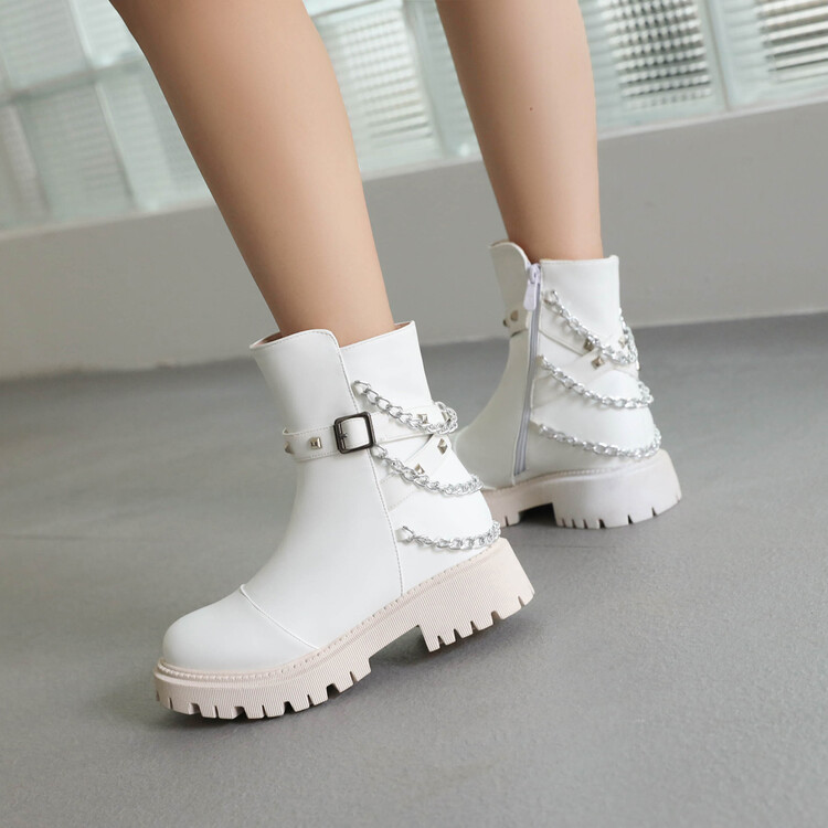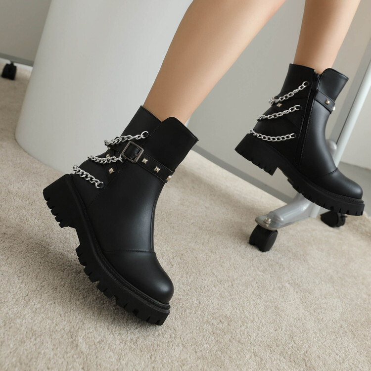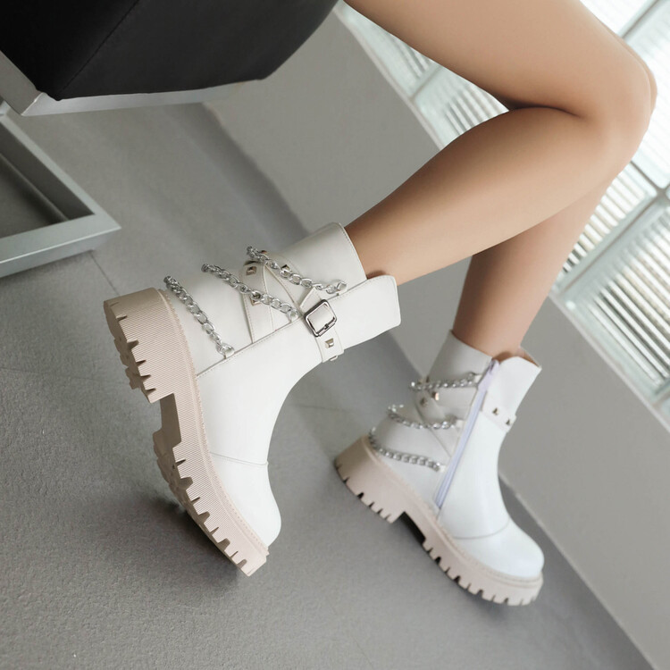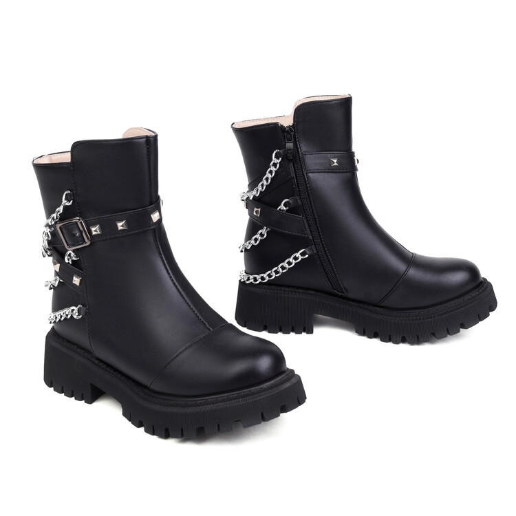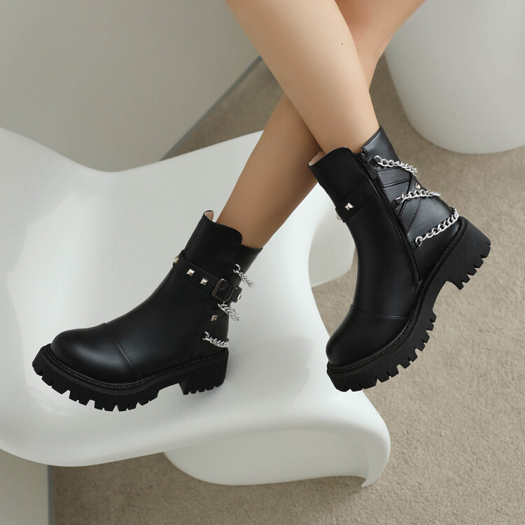 가을 로리타 낮은 굽 발목 부츠 플러스 사이즈 40-45 대외 무역 크로스-국경 여성 부츠 마틴 금속 체인 발목 부츠 2