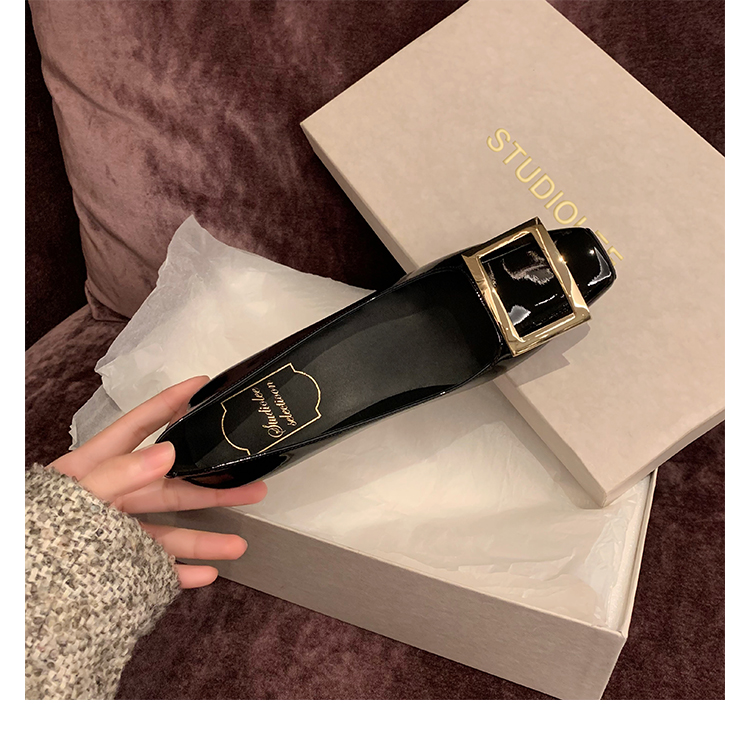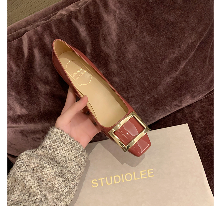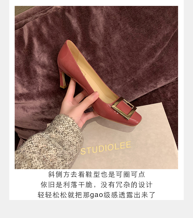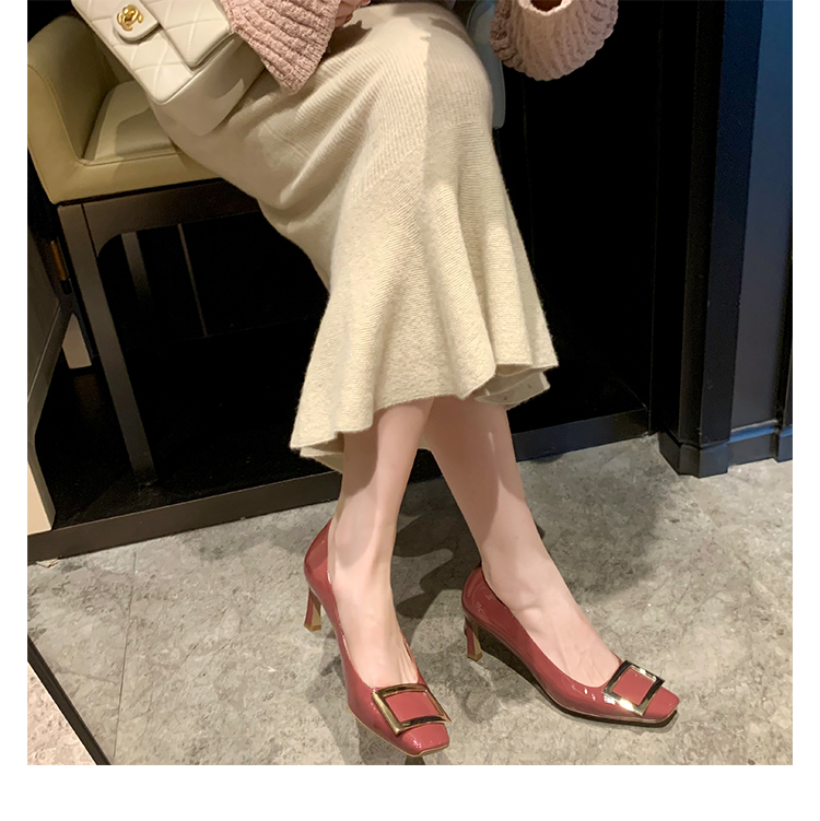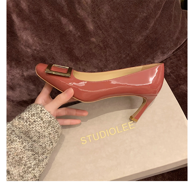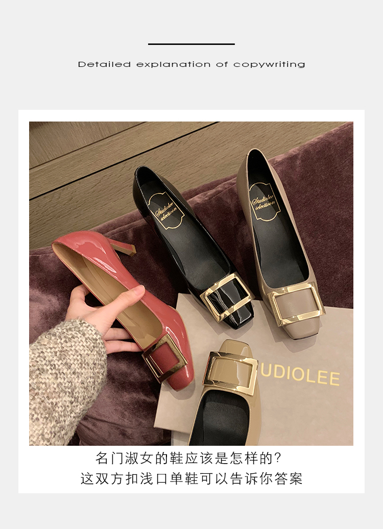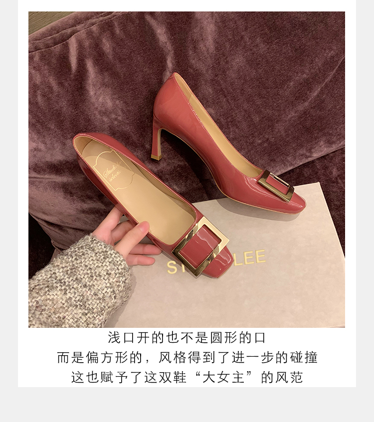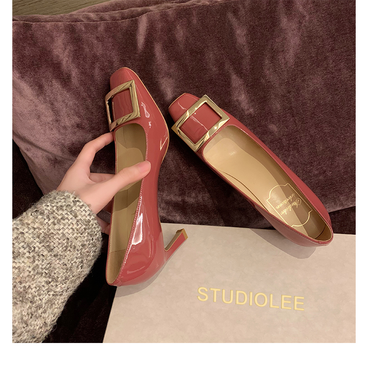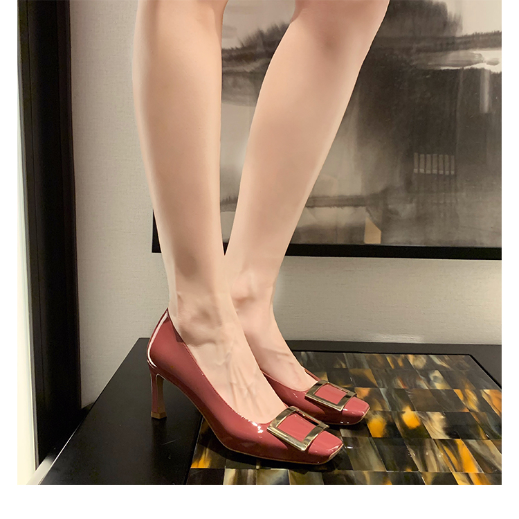 재고 있음 ~ 봄, 가을 여성용 포도 마 프렌치 이브닝 스타일 스퀘어 버클 스틸레토 스퀘어 발가락 얕은 입 통근 신발