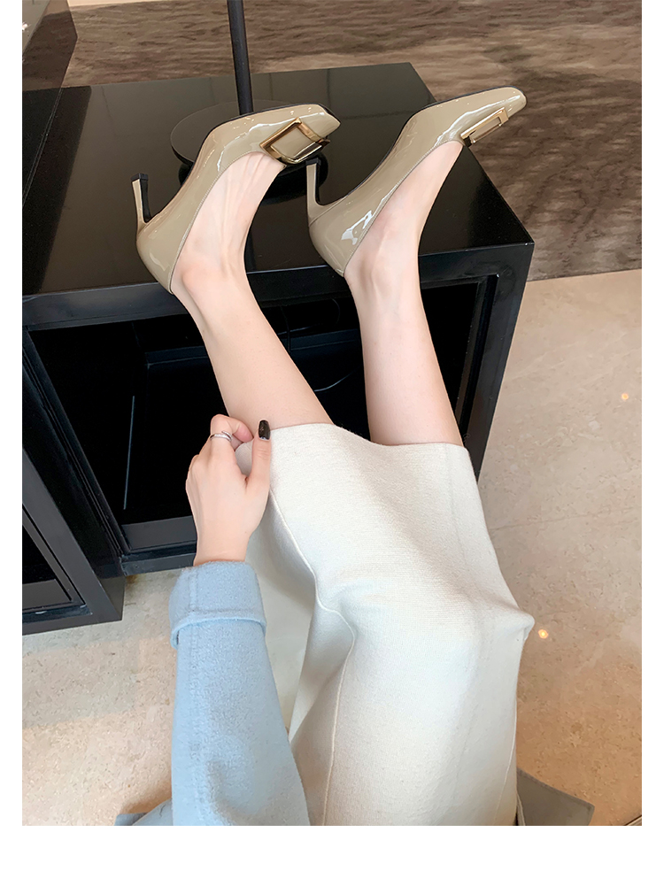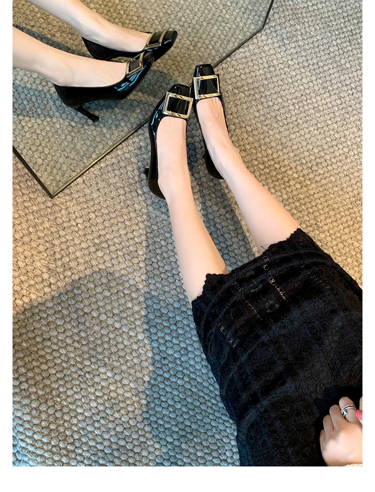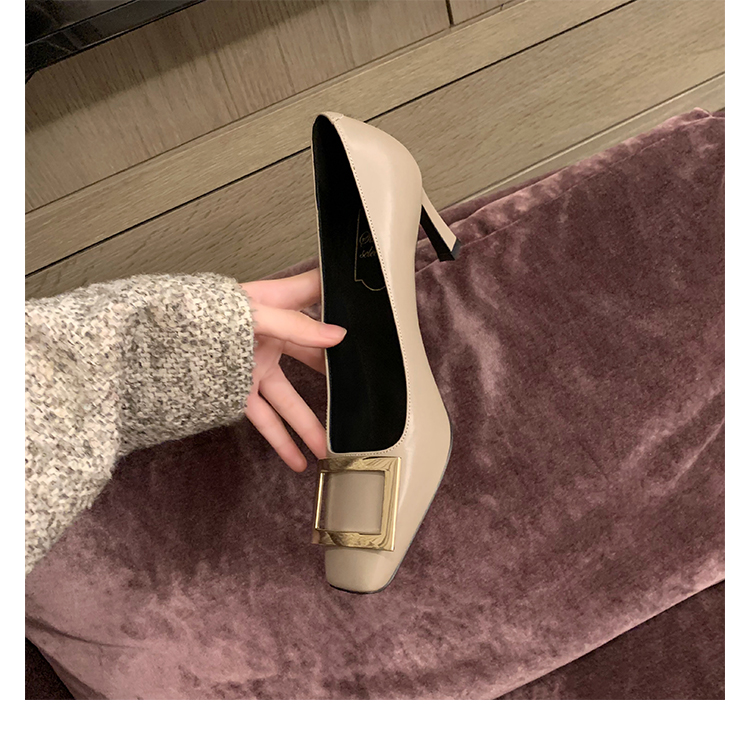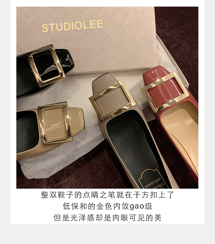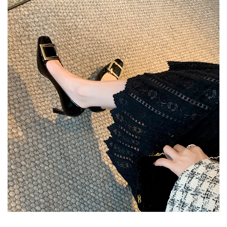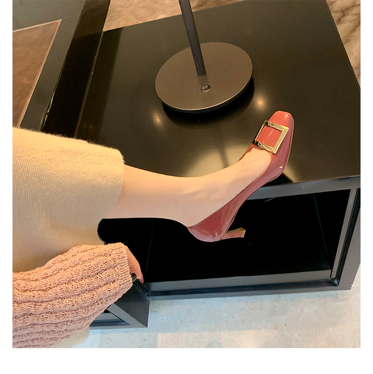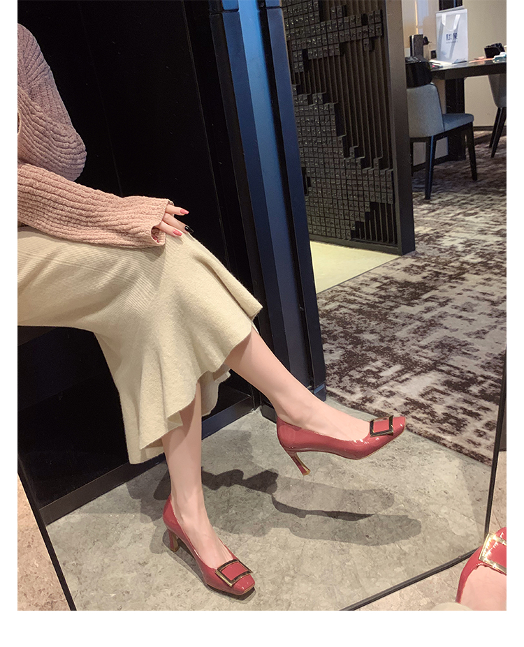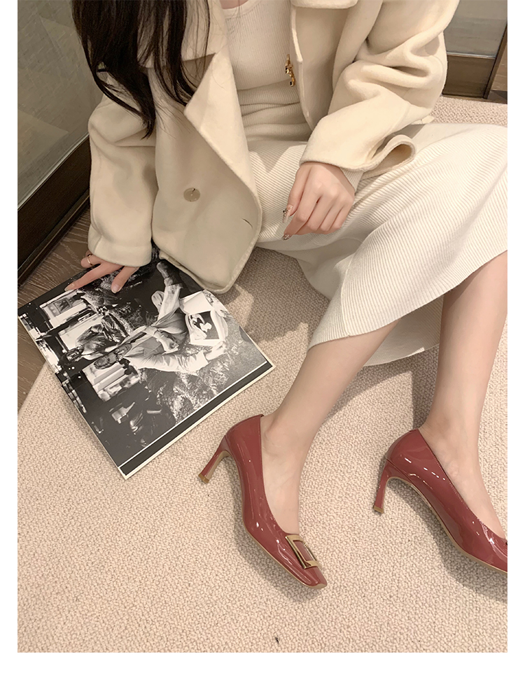 재고 있음 ~ 봄, 가을 여성용 포도 마 프렌치 이브닝 스타일 스퀘어 버클 스틸레토 스퀘어 발가락 얕은 입 통근 신발