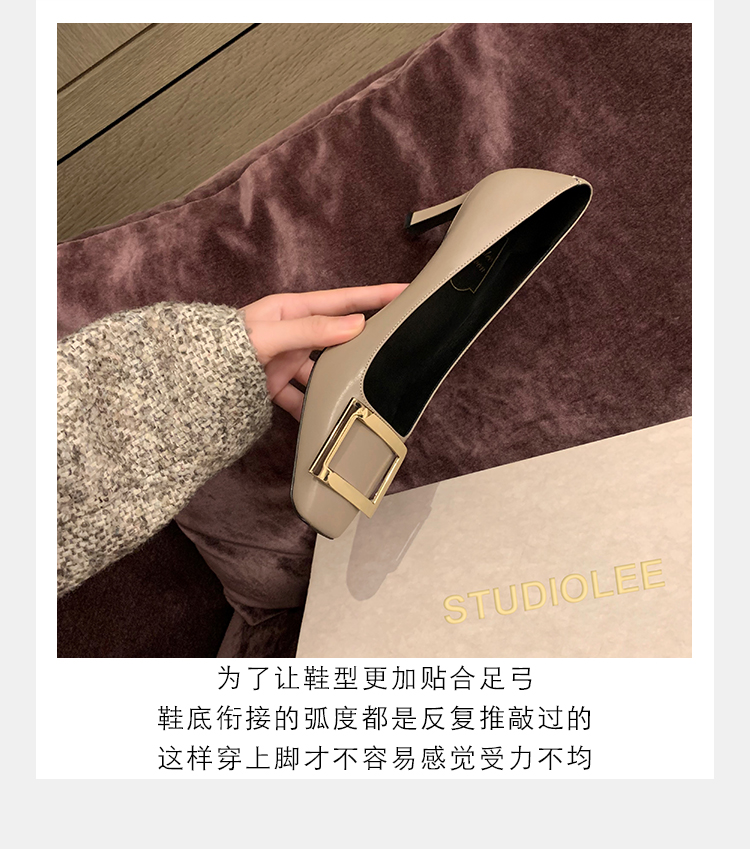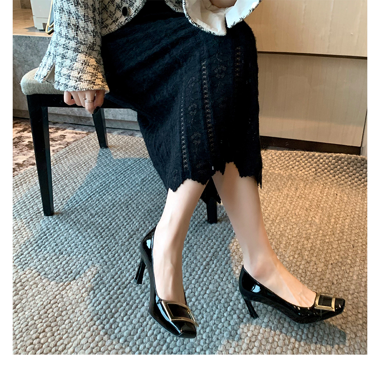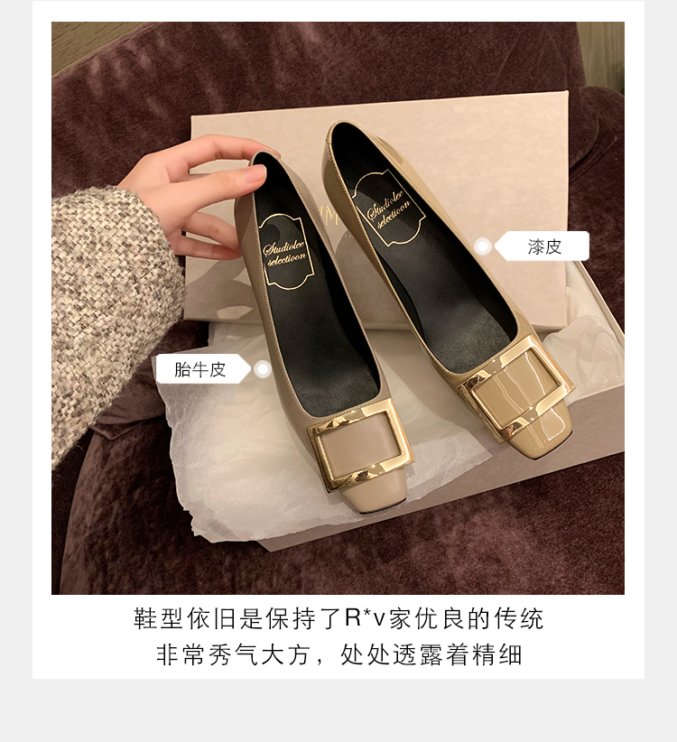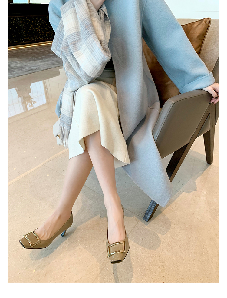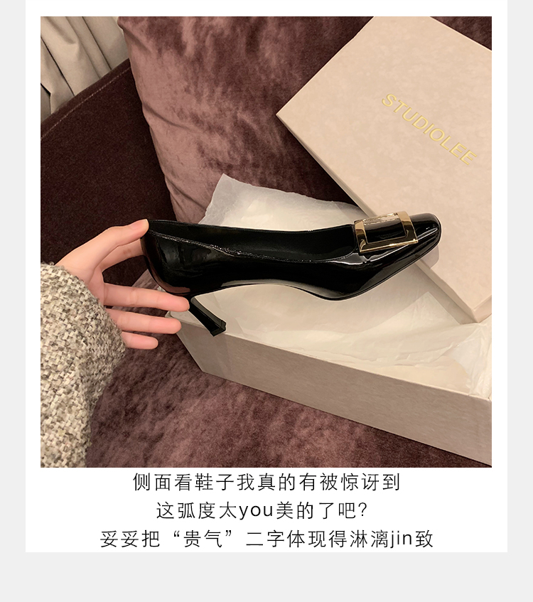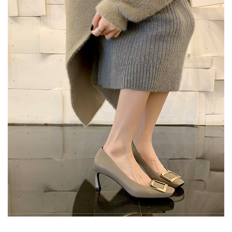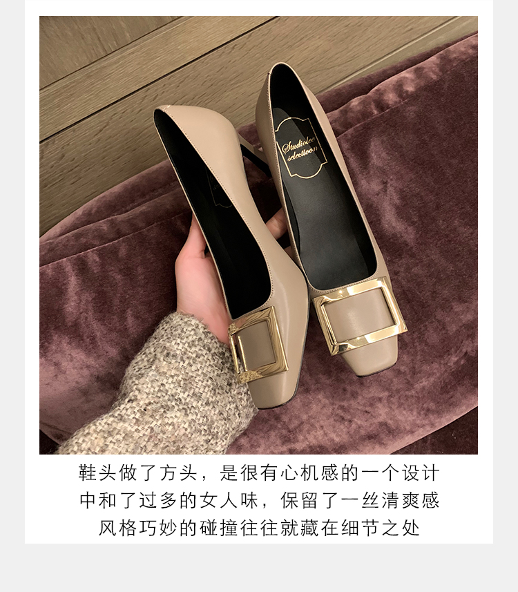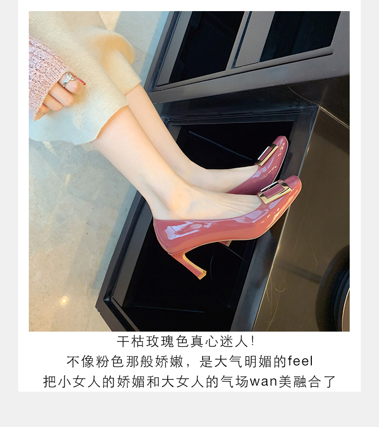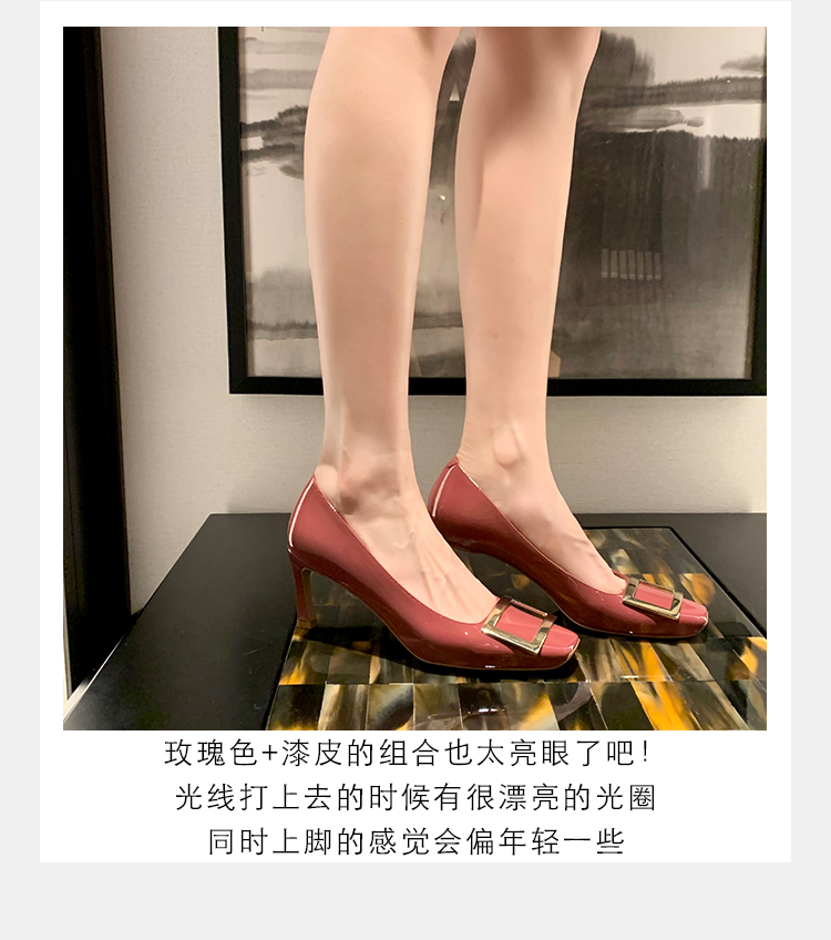 재고 있음 ~ 봄, 가을 여성용 포도 마 프렌치 이브닝 스타일 스퀘어 버클 스틸레토 스퀘어 발가락 얕은 입 통근 신발