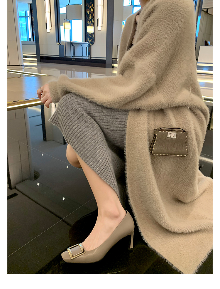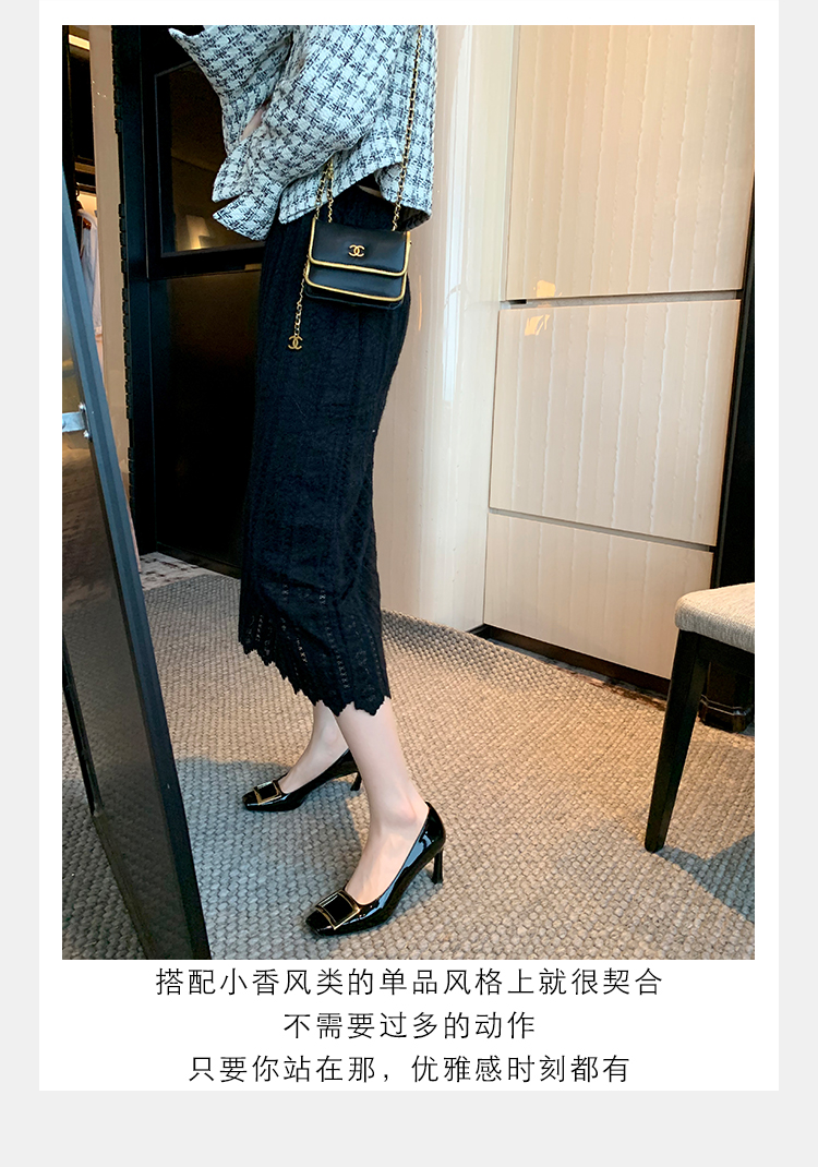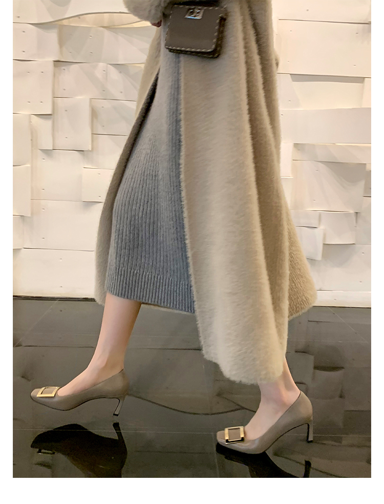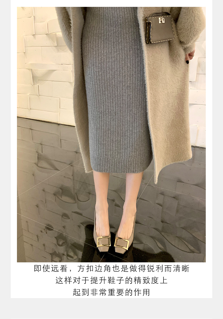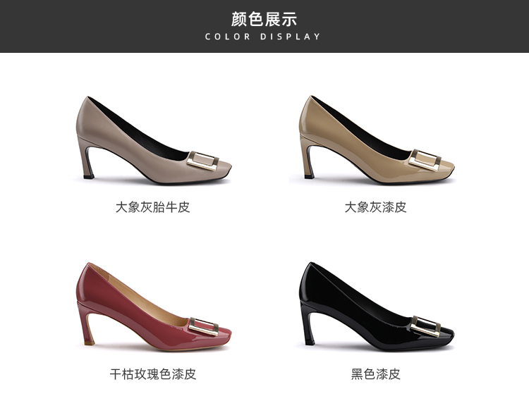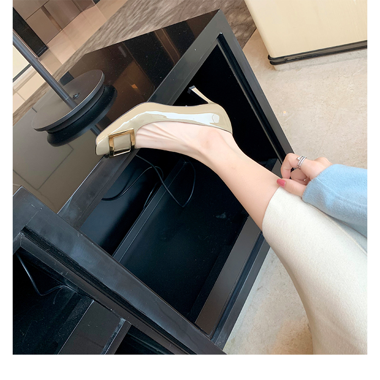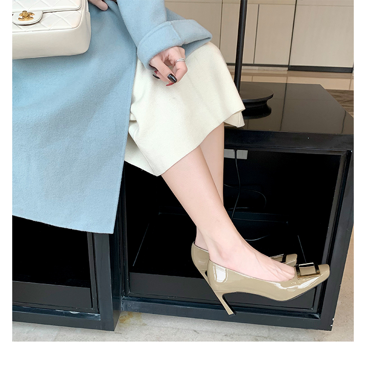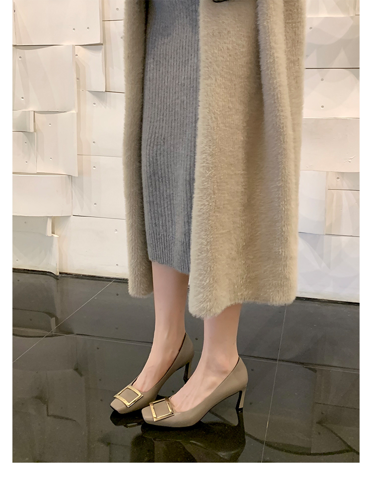 재고 있음 ~ 봄, 가을 여성용 포도 마 프렌치 이브닝 스타일 스퀘어 버클 스틸레토 스퀘어 발가락 얕은 입 통근 신발