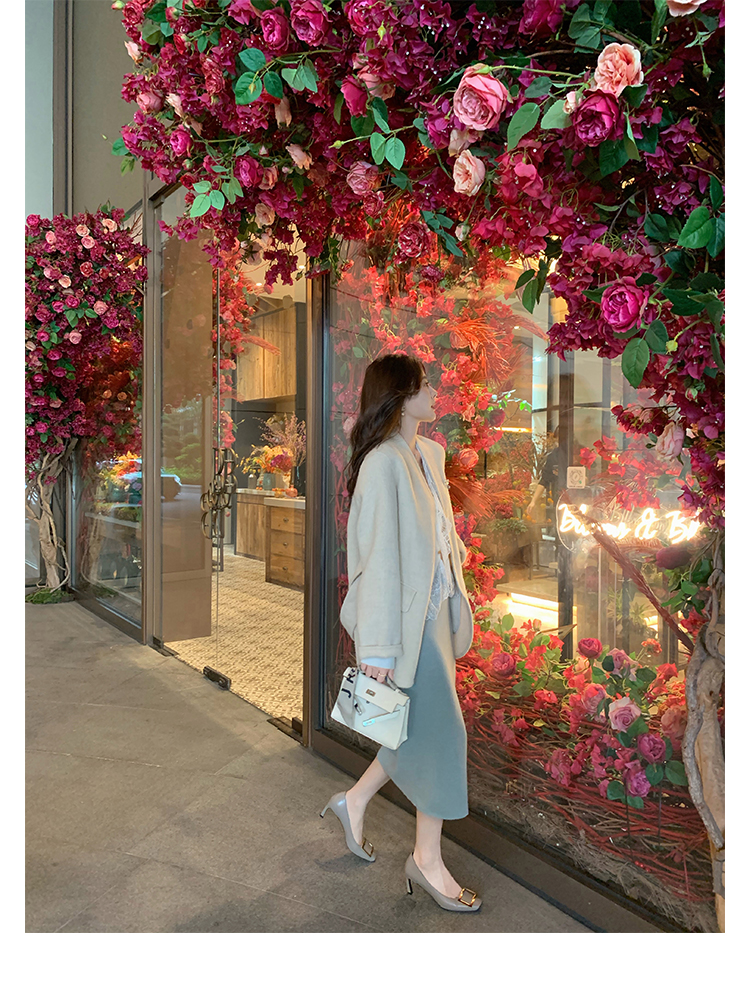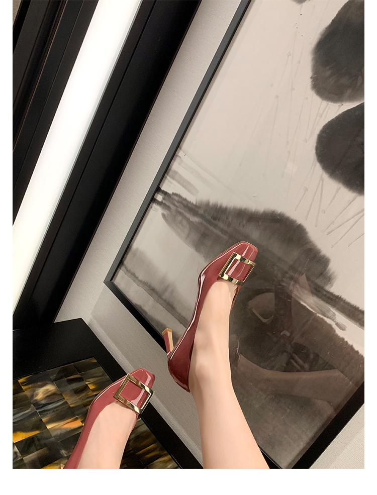 재고 있음 ~ 봄, 가을 여성용 포도 마 프렌치 이브닝 스타일 스퀘어 버클 스틸레토 스퀘어 발가락 얕은 입 통근 신발스토어 가기