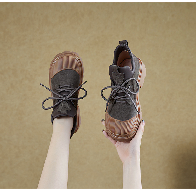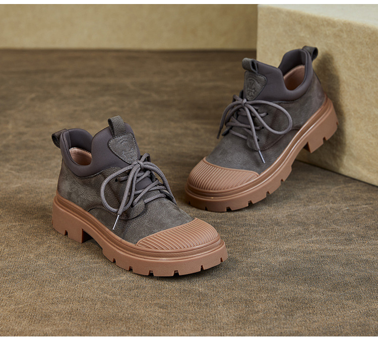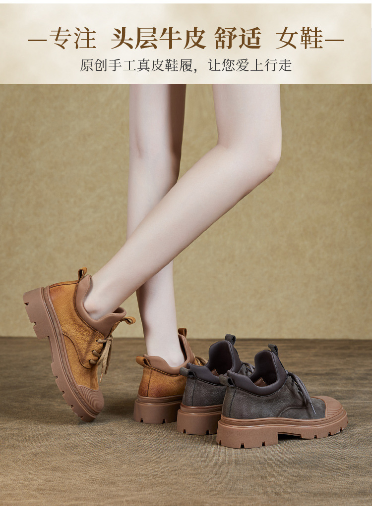 정품 가죽 여성 신발 가을 2023 새로운 두꺼운 단독 영국 스타일 짧은 탑 마틴 부츠 통기성 발가락 부츠 대황 부츠스토어 가기