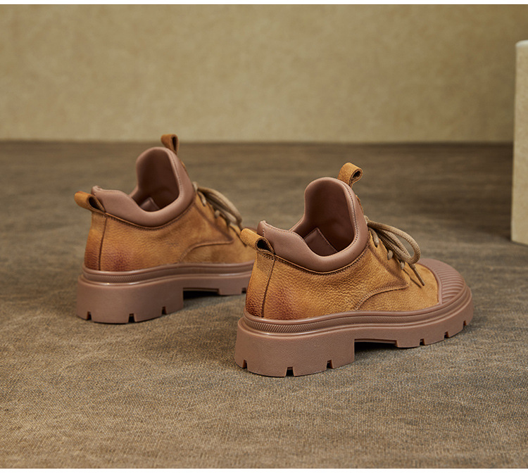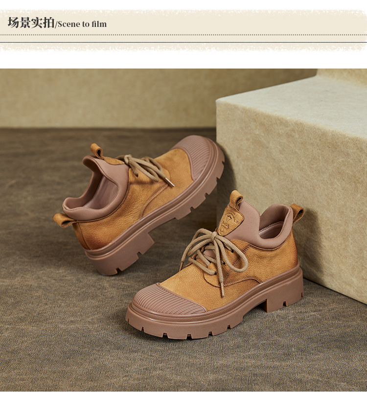 정품 가죽 여성 신발 가을 2023 새로운 두꺼운 단독 영국 스타일 짧은 탑 마틴 부츠 통기성 발가락 부츠 대황 부츠