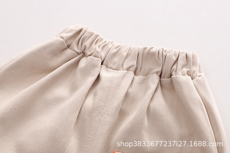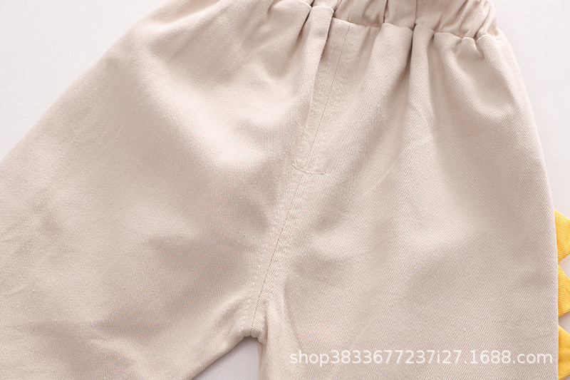 2023 가을 새 소년 만화 공룡 셔츠 긴 소매 세트 소년 캐주얼 바지 투피스 도매