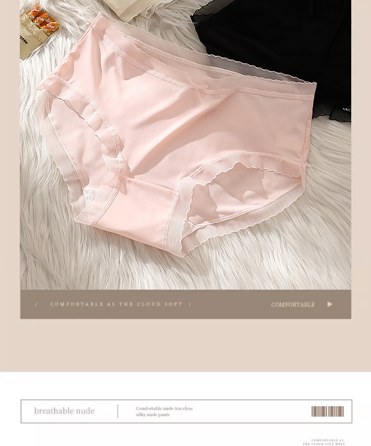 여름 아이스 실크 속옷 여성용 미드 웨이스트 보우 통기성 울트라 씬 섹시 소녀 일본 학생 팬티스토어 가기