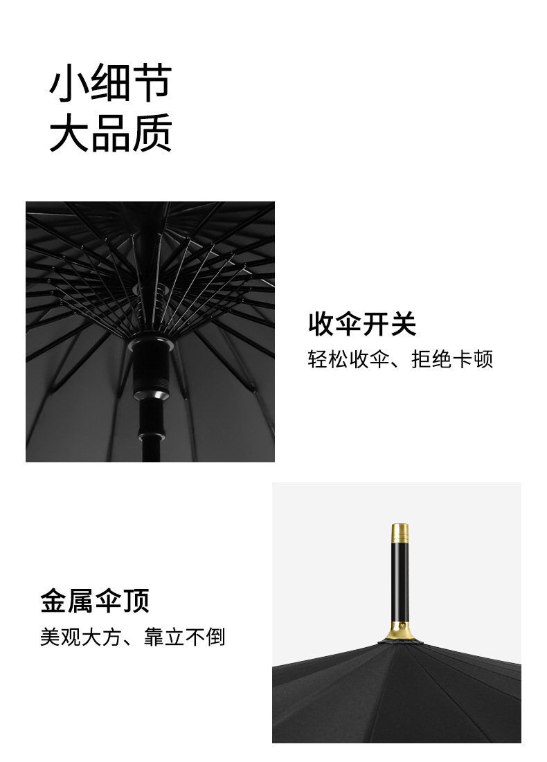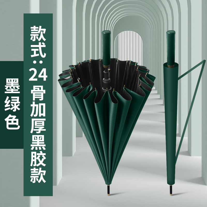 24 뼈 자동 우산 대형 긴 손잡이 스트레이트 블랙 고무 우산 맑고 비오는 이중 사용 자외선 차단제 양산 우산 사용자 정의 로고