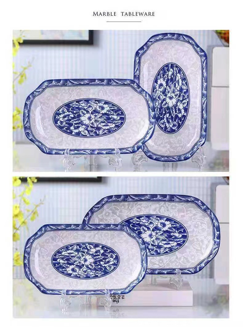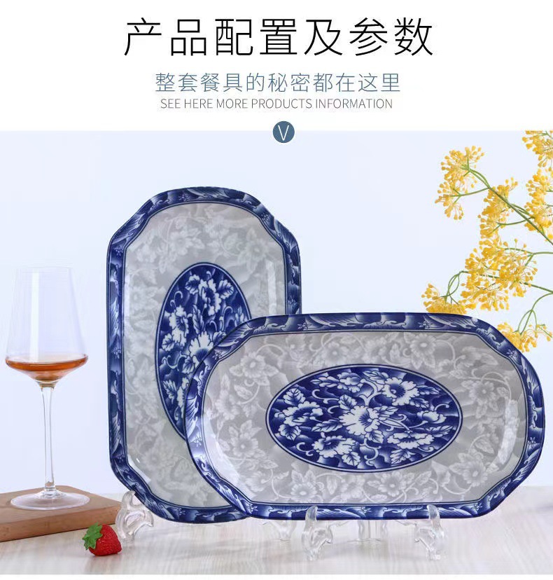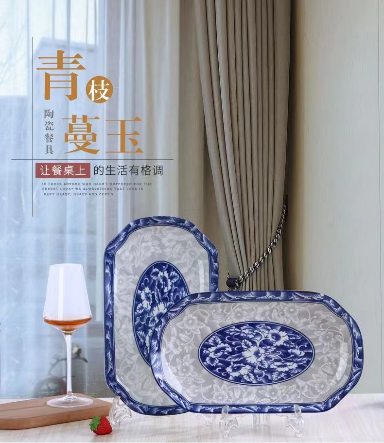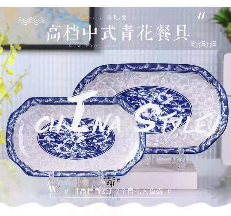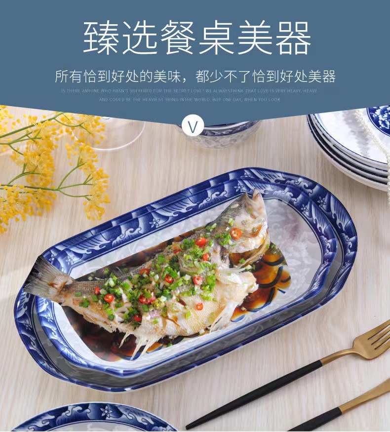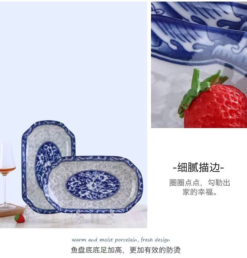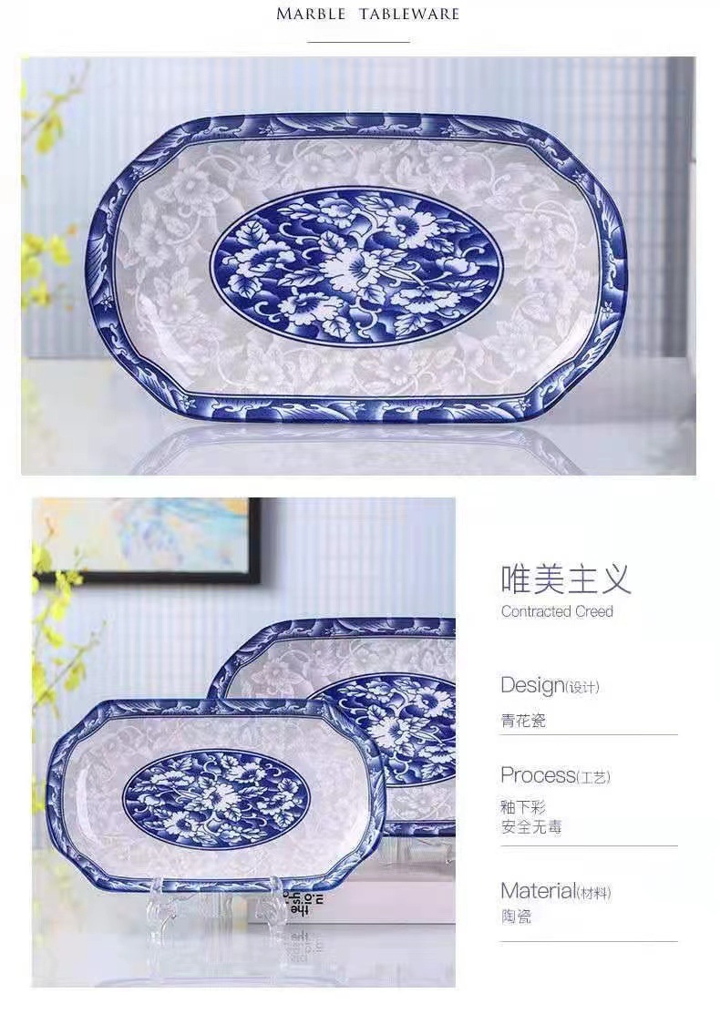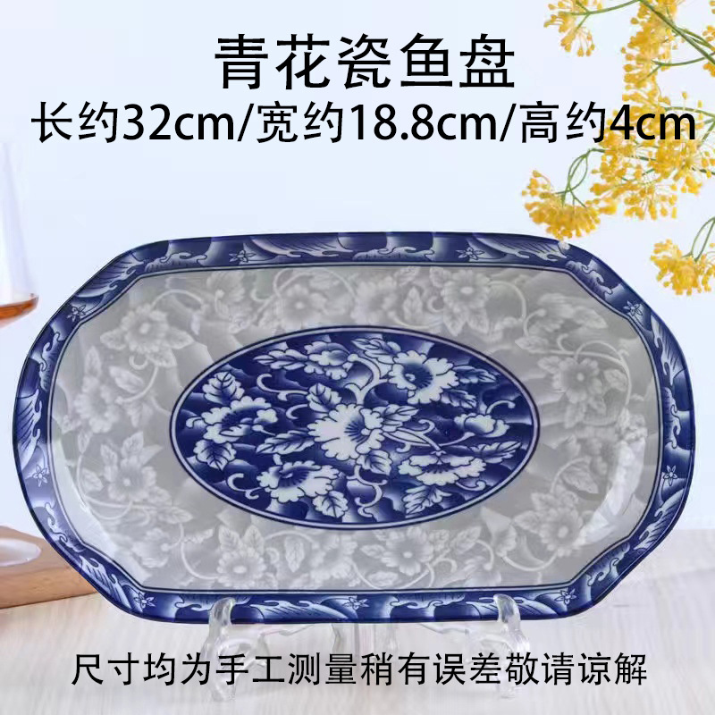 녹색 꽃 운율 초대형 생선 접시 징데 청 청색과 흰색 도자기 찌고 구운 직사각형 접시 고온 저항 언더 글레이즈 색상