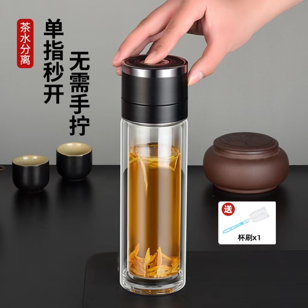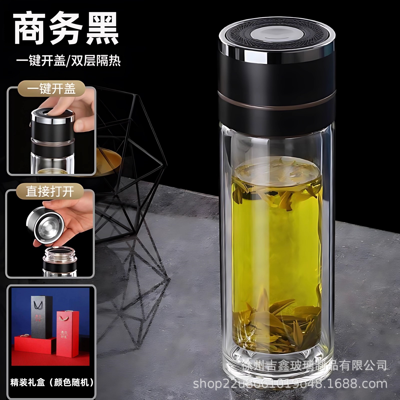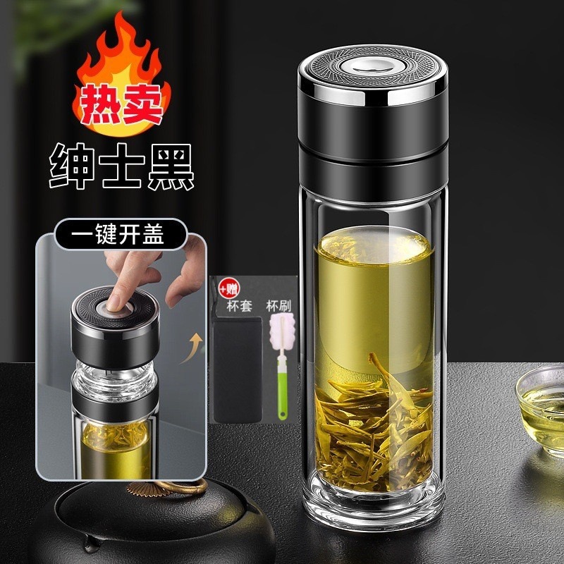 차량용 빠른 개봉 컵, 원터치 뚜껑 열기, 차와 물 분리 음료컵, 유리 차컵, 이중층 방열, 비즈니스 고급형