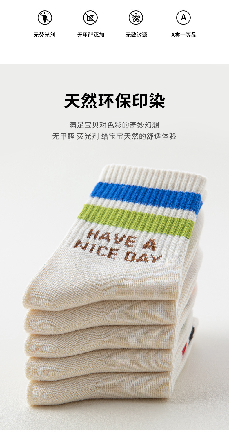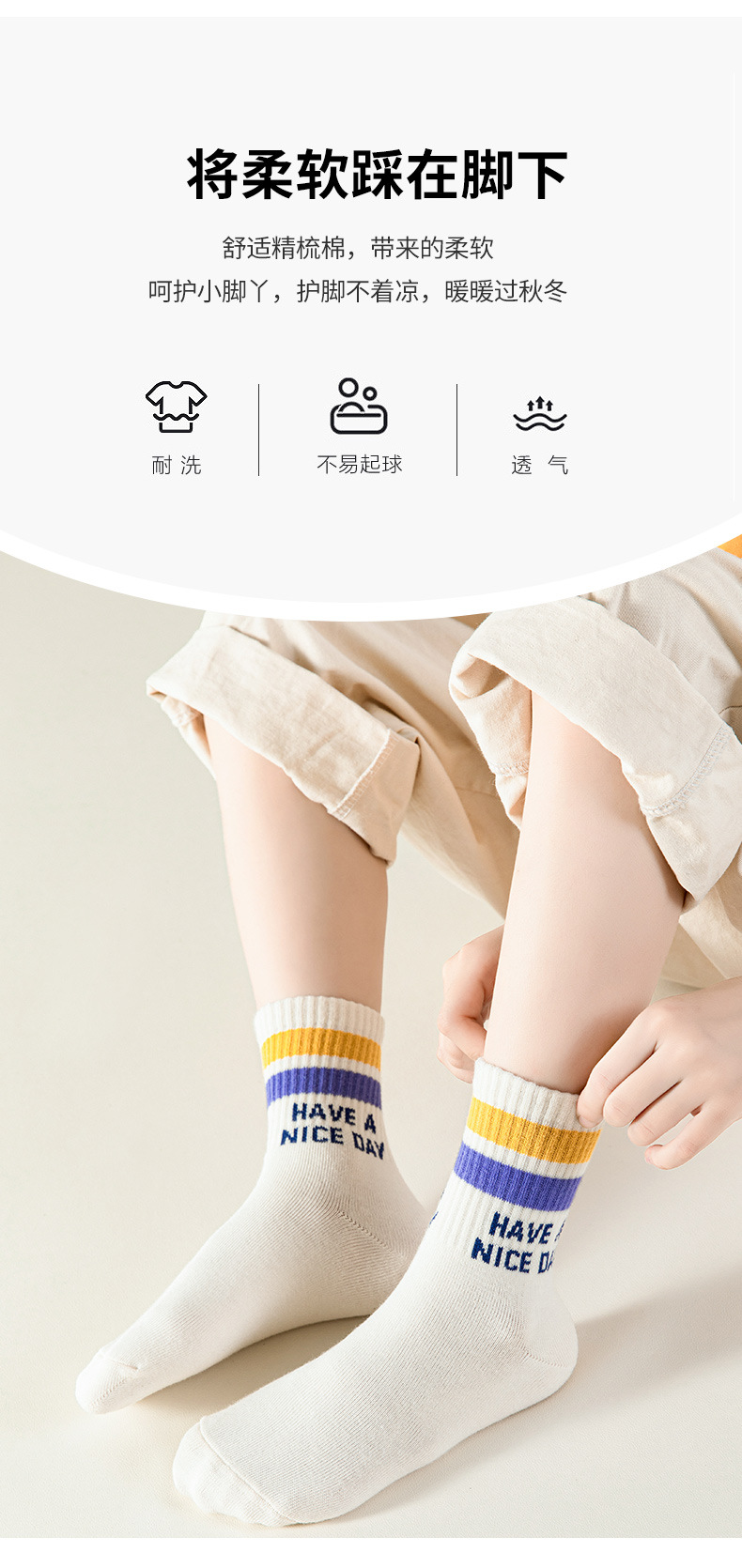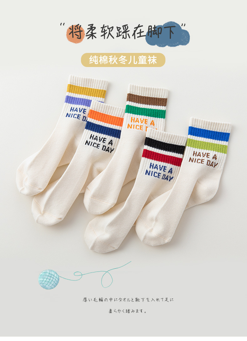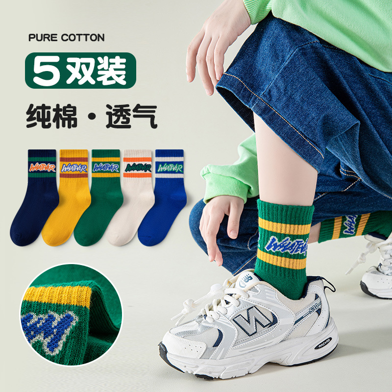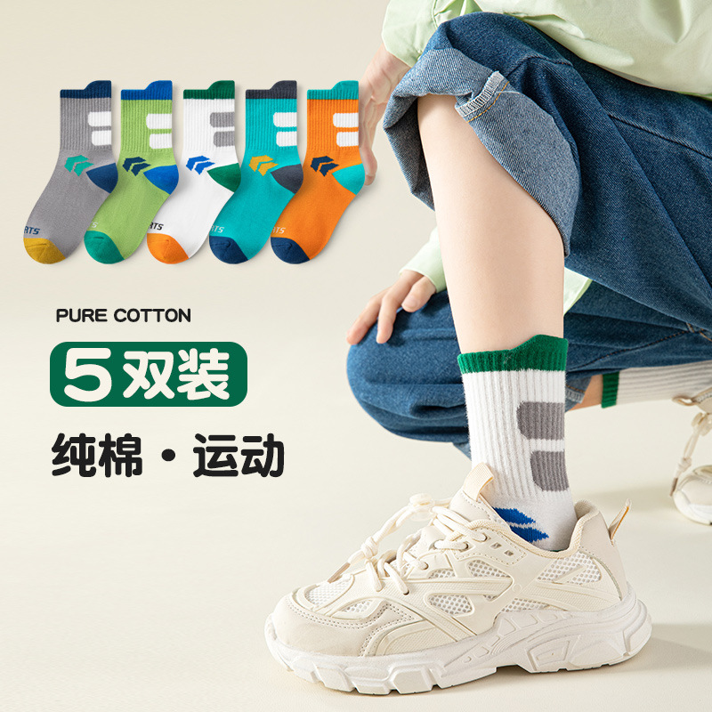 【5켤레】어린이 양말 봄 가을 스포츠 스타일 A급 면 양말 학생 양말 가을 겨울 중간 길이 도매 및 배송스토어 가기