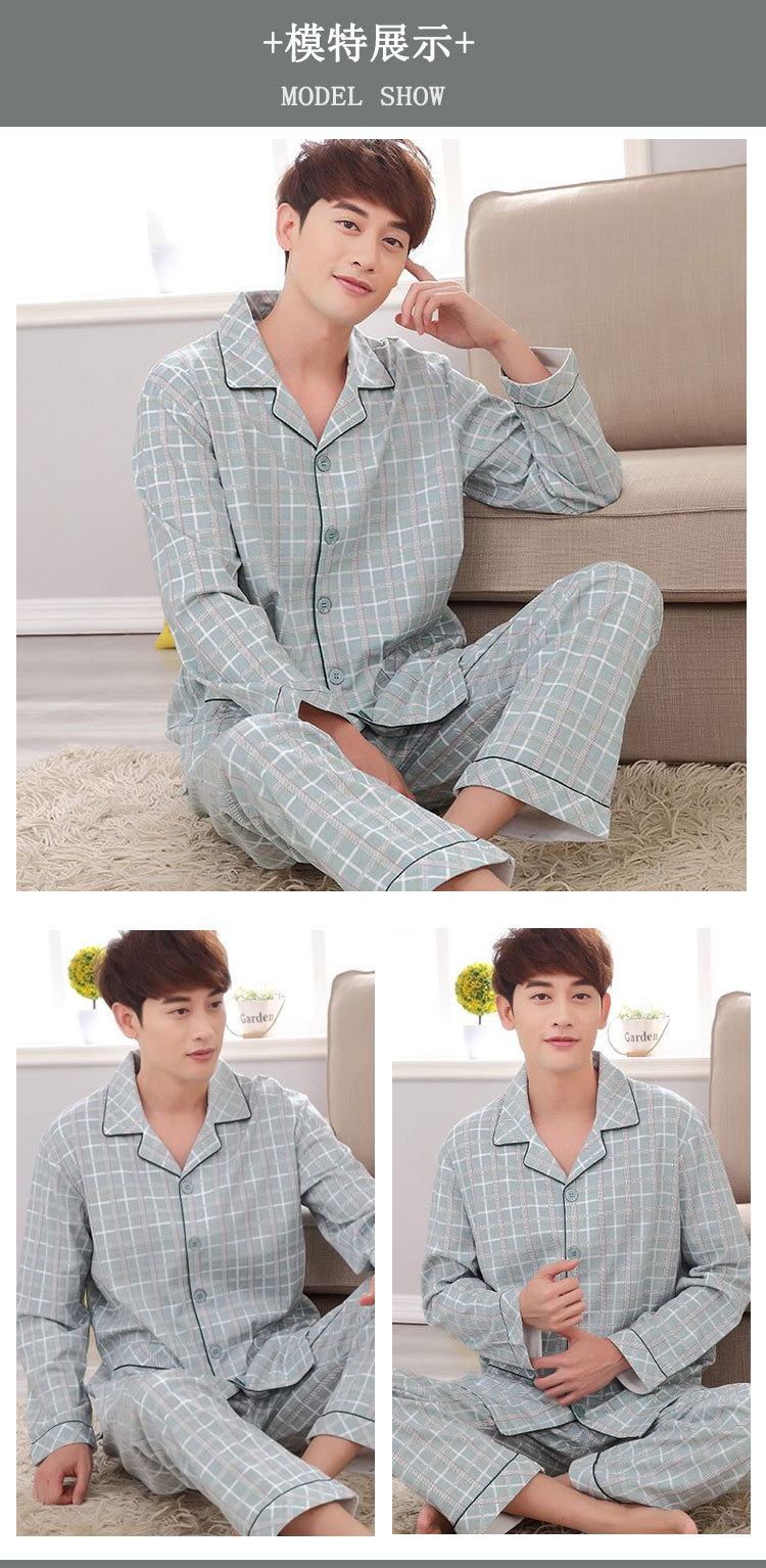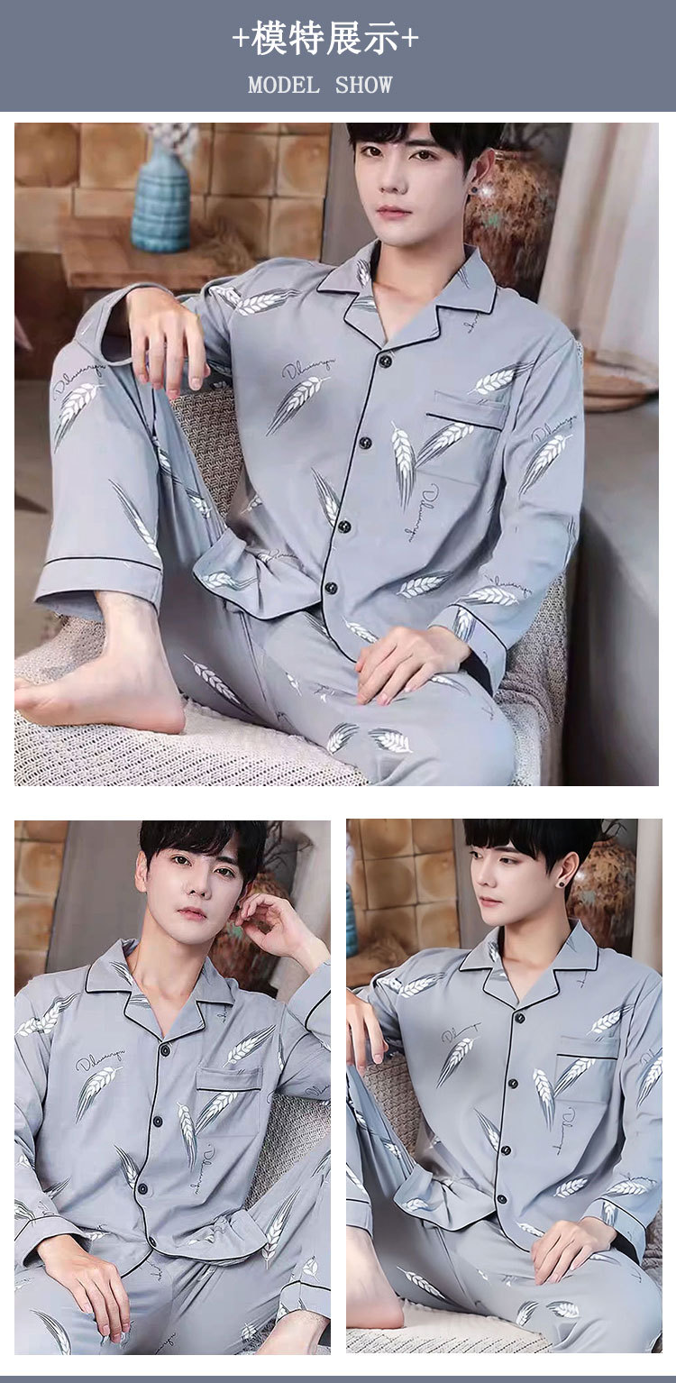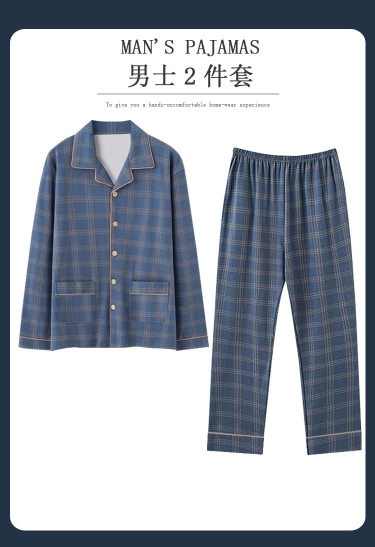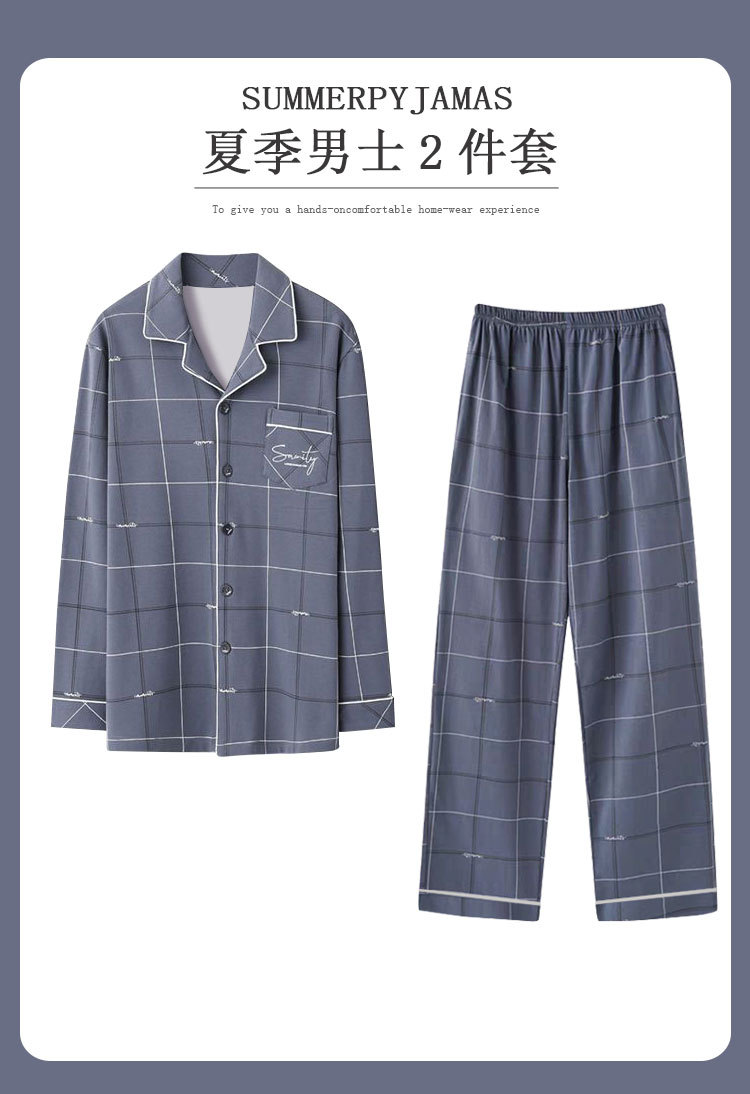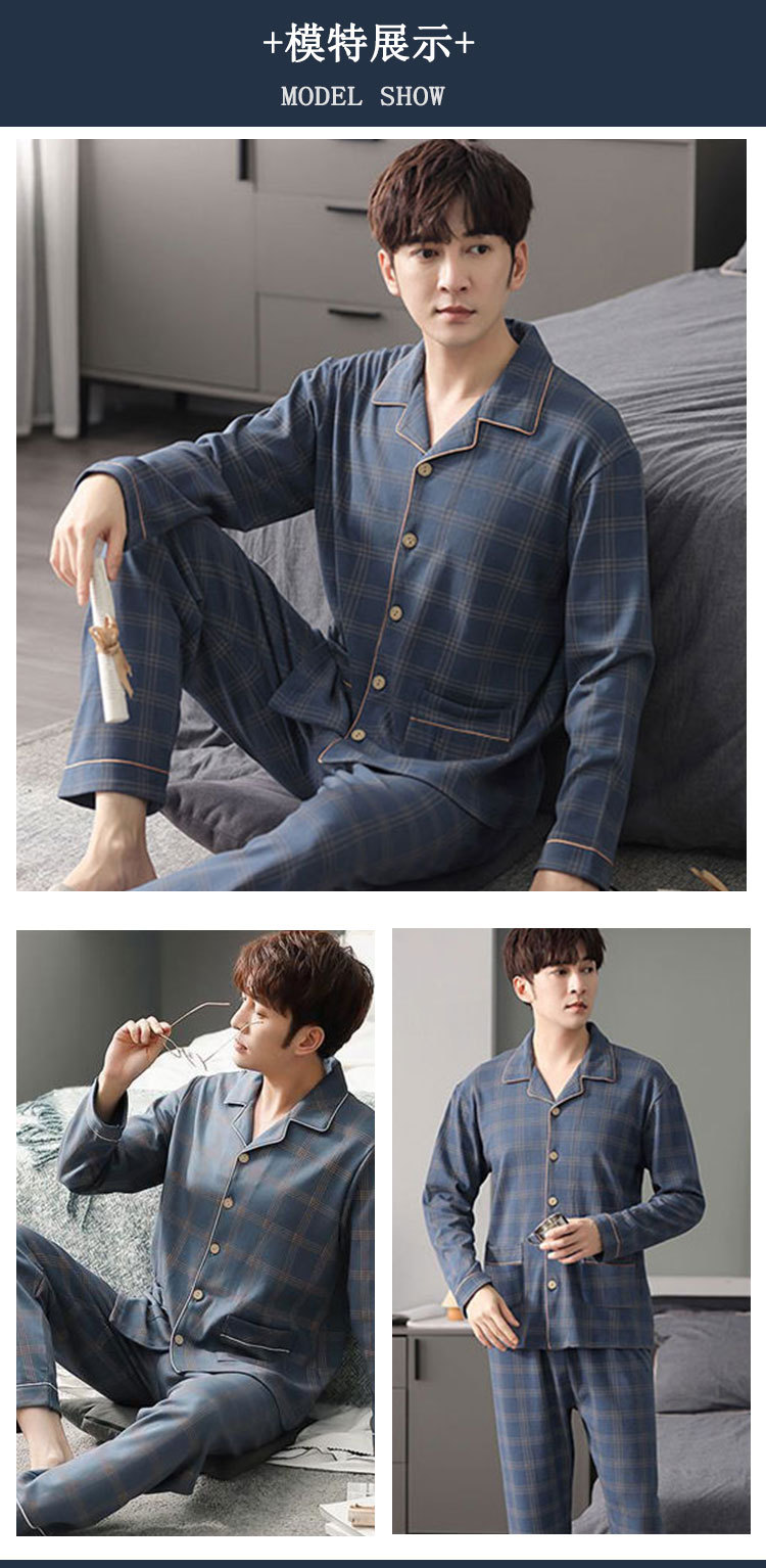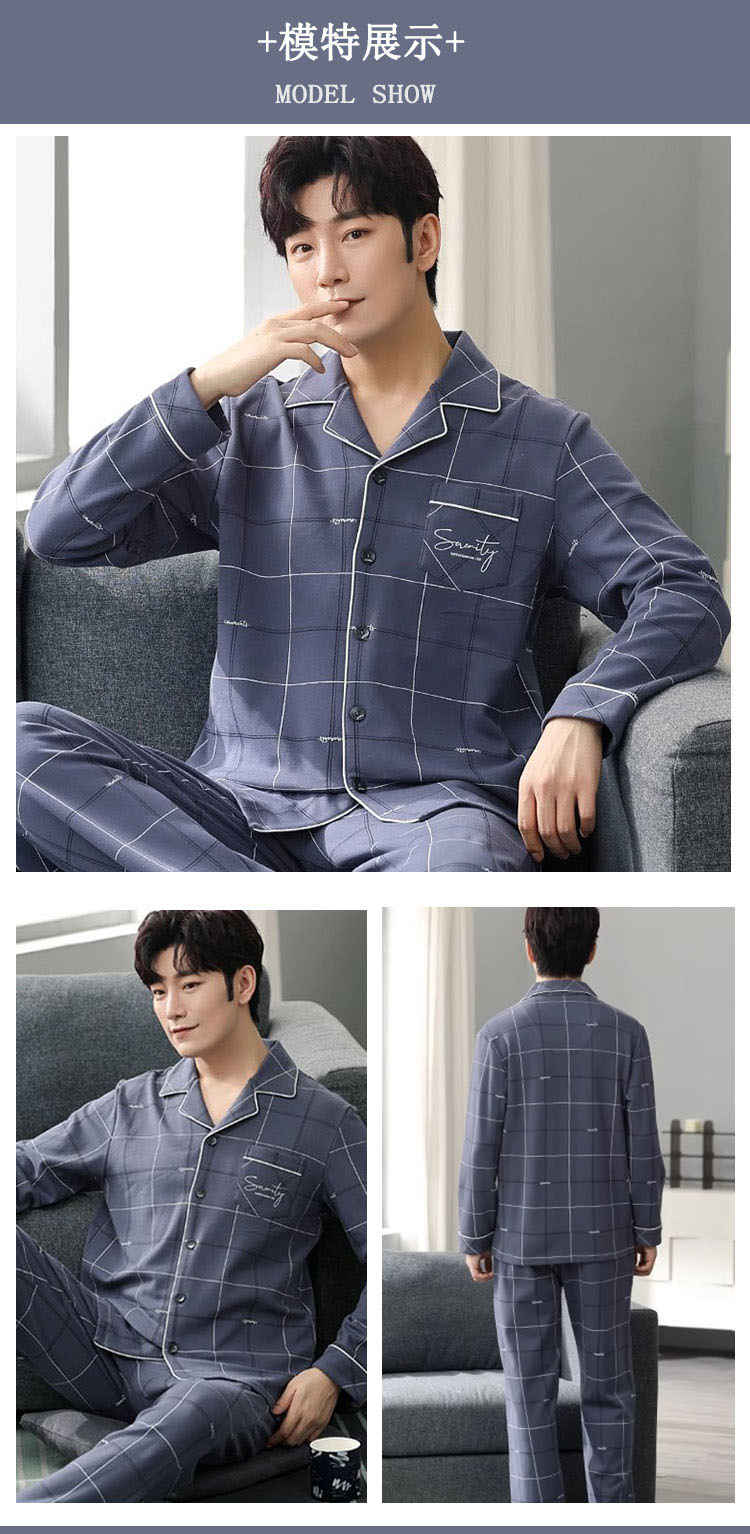 긴팔 잠옷 남자의 봄과 가을 최신 모조 면 고급 격자 무늬 세트 플러스 사이즈 캐주얼 겉옷 가정 옷스토어 가기