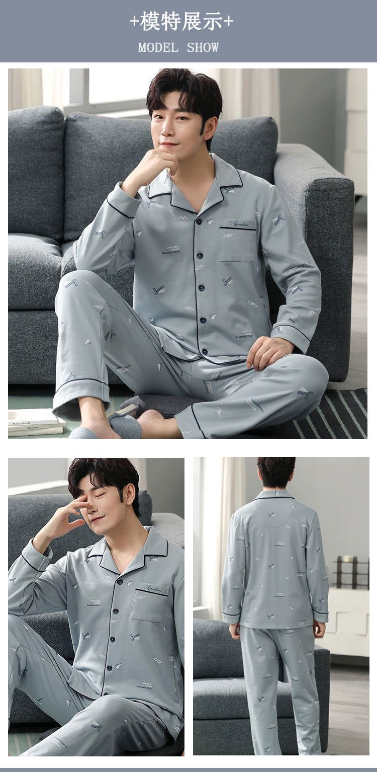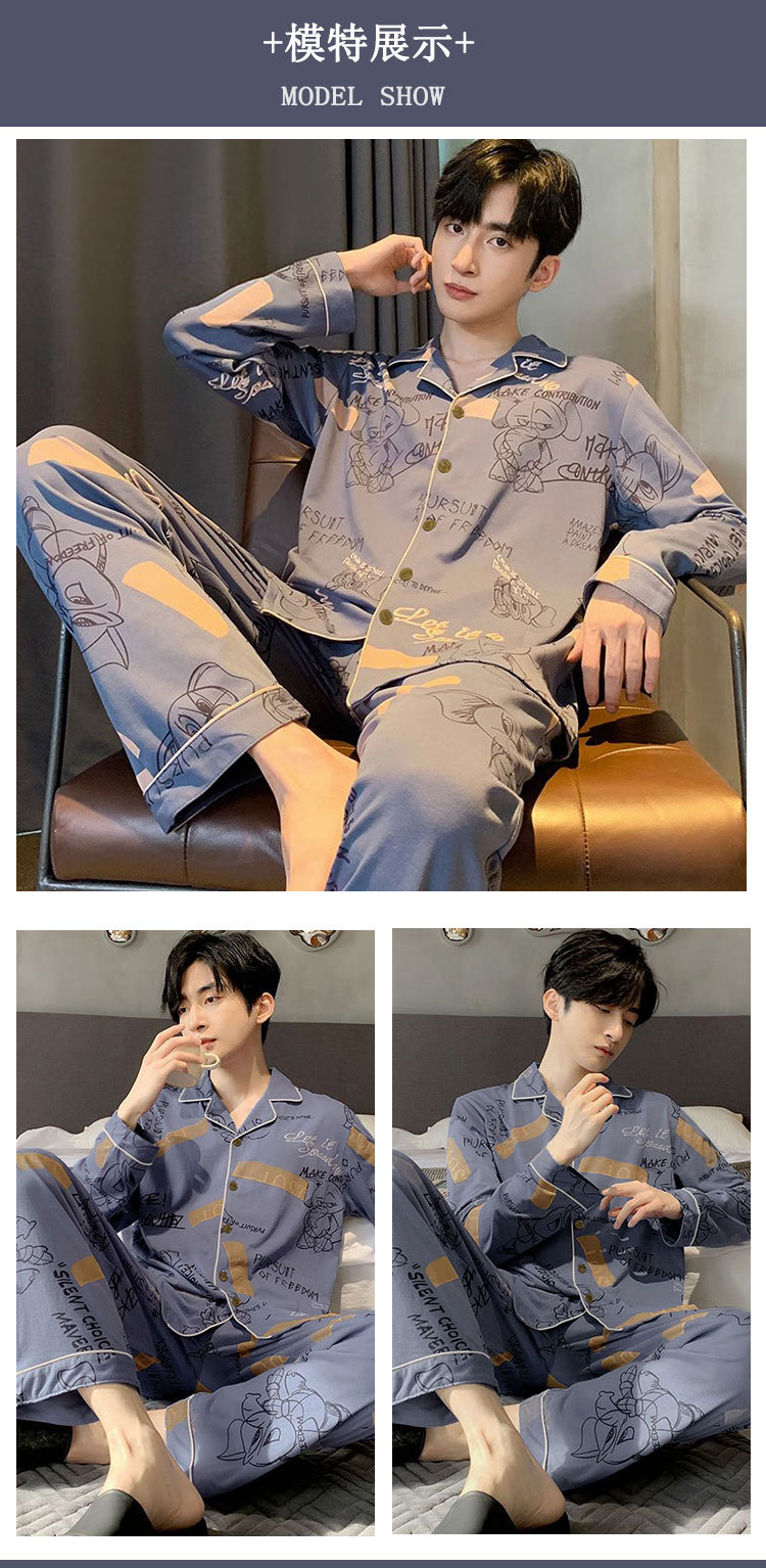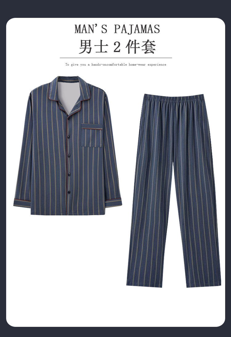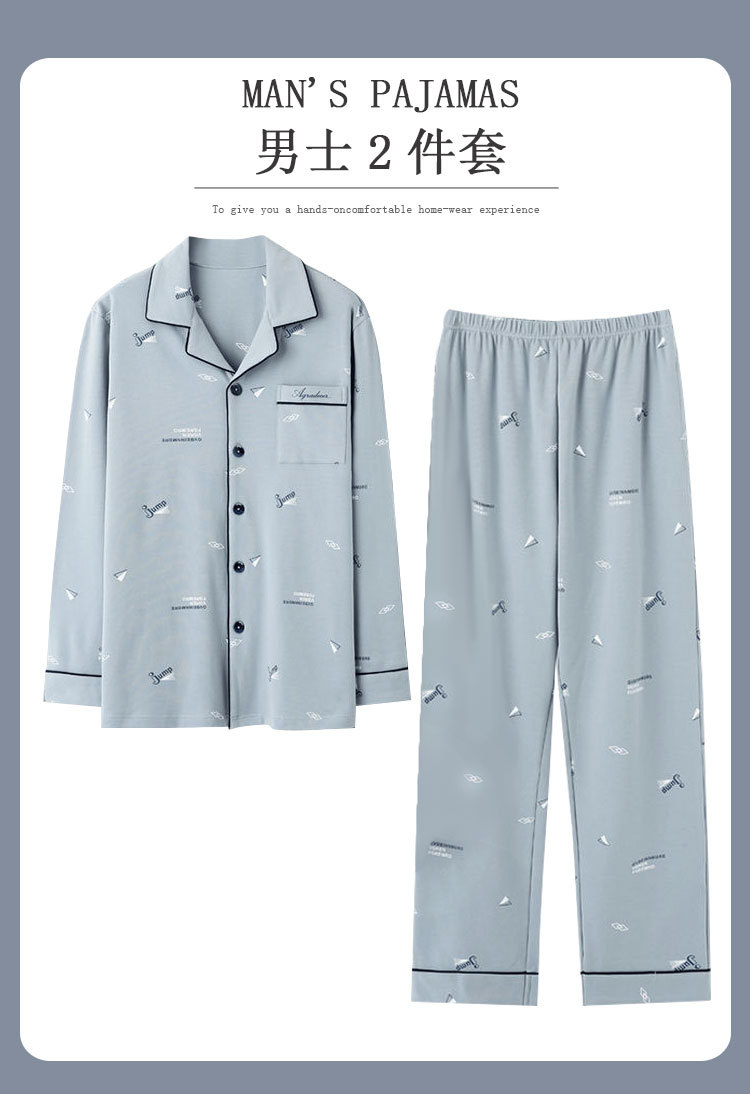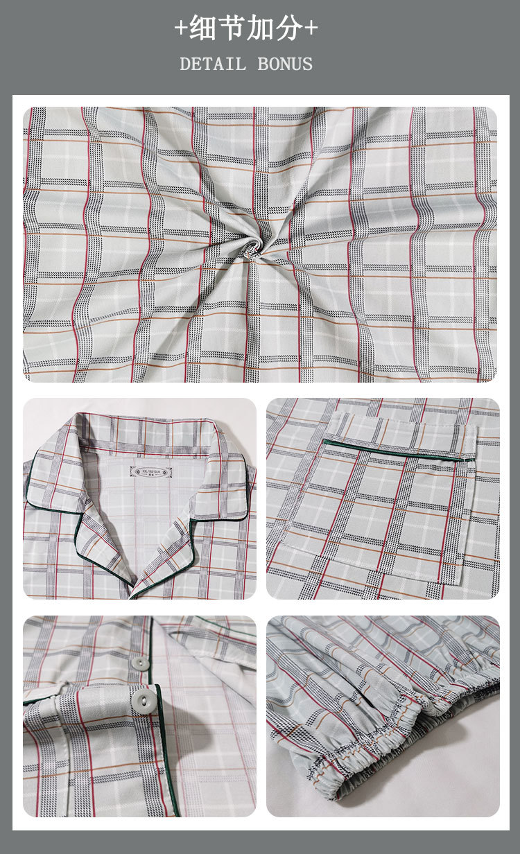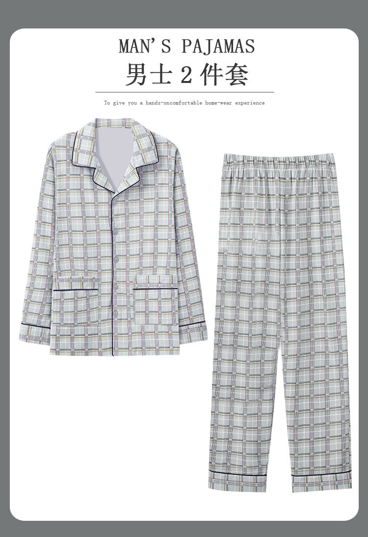 긴팔 잠옷 남자의 봄과 가을 최신 모조 면 고급 격자 무늬 세트 플러스 사이즈 캐주얼 겉옷 가정 옷스토어 가기