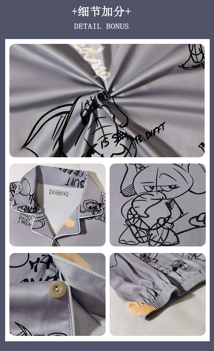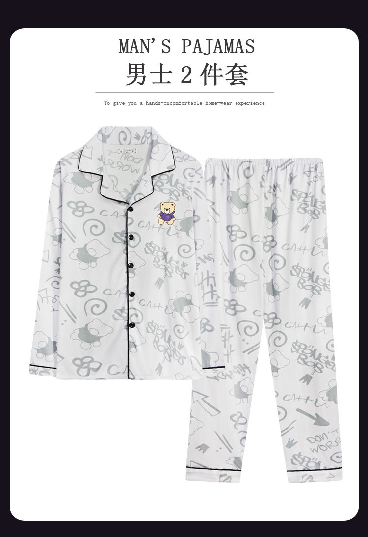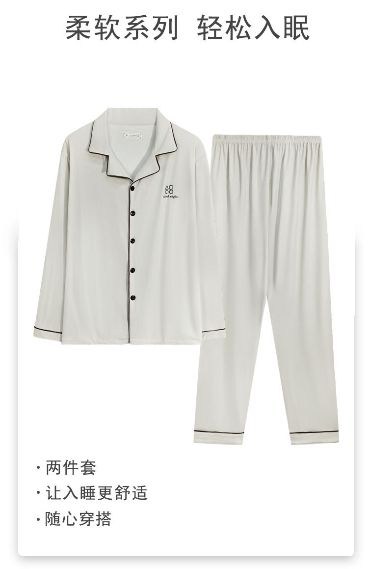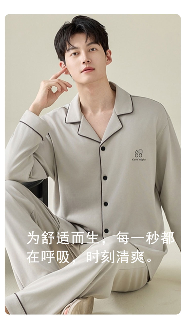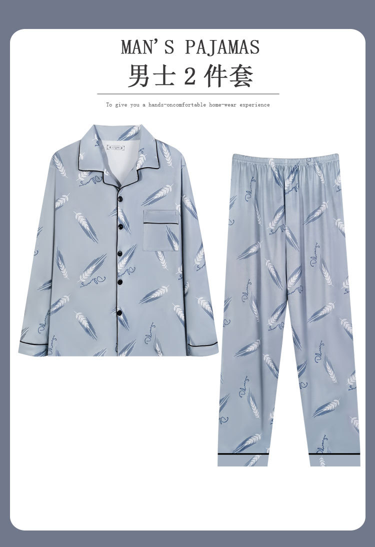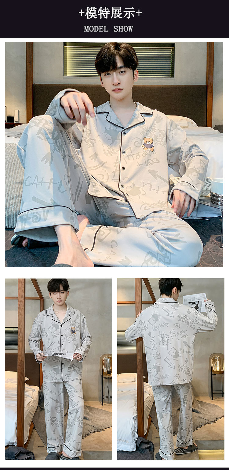 긴팔 잠옷 남자의 봄과 가을 최신 모조 면 고급 격자 무늬 세트 플러스 사이즈 캐주얼 겉옷 가정 옷스토어 가기
