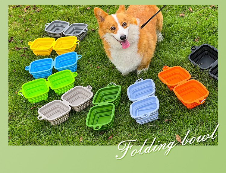 스팟 사각형 실리콘 접는 그릇 야외 휴대용 개 그릇 개 용품 피더 실리콘 고양이 그릇 느린 음식 그릇스토어 가기