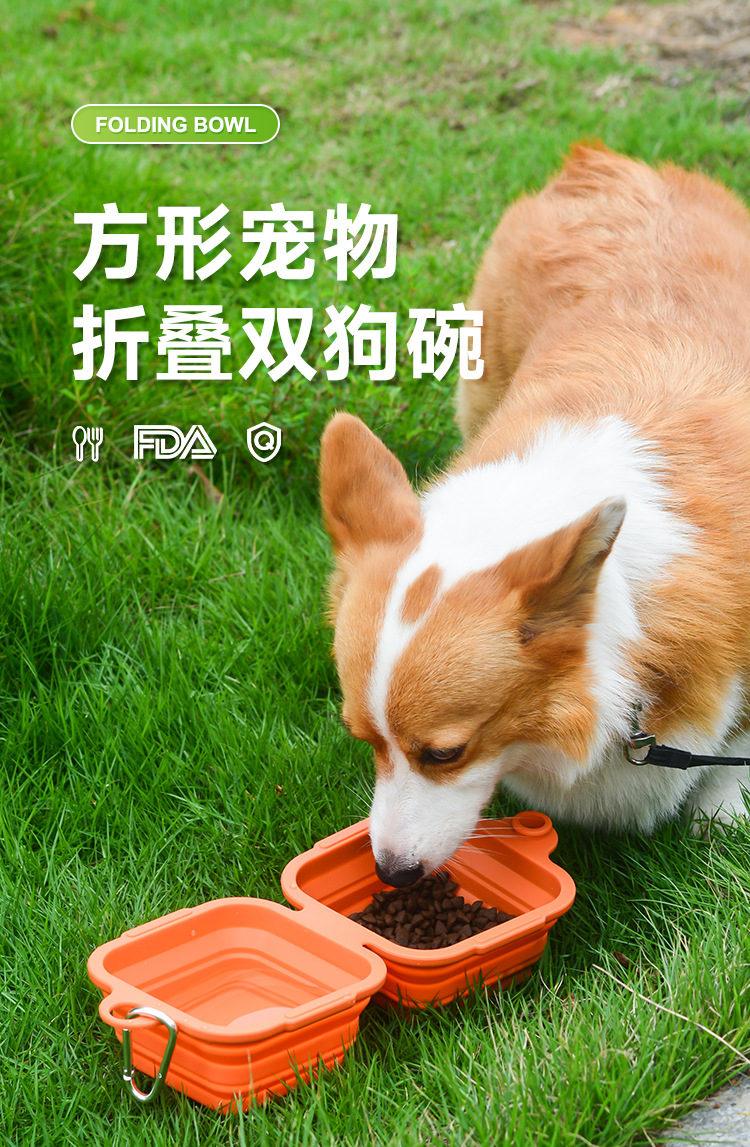 • 스퀘어 펫 접이식 더블 개 그릇 [카키]