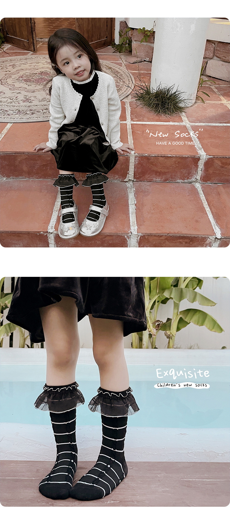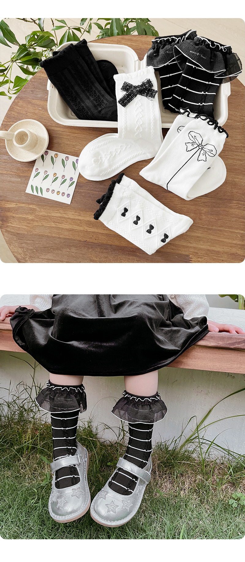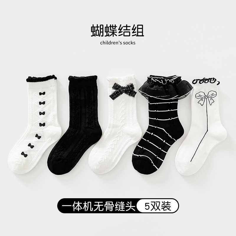 여자 양말 흰색 레이스 양말 2023 가을 소녀 줄무늬 튜브 양말 로리타 어린이 공주 양말 세대 머리스토어 가기