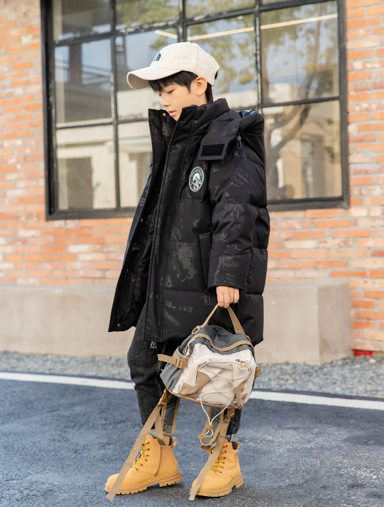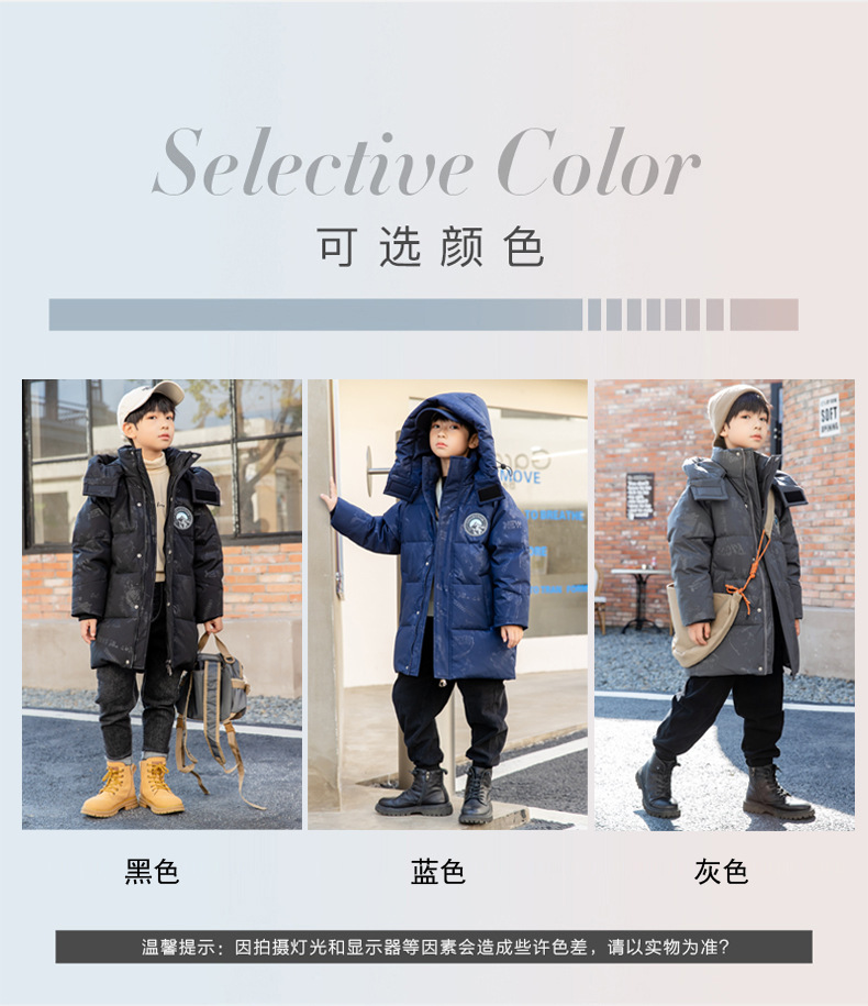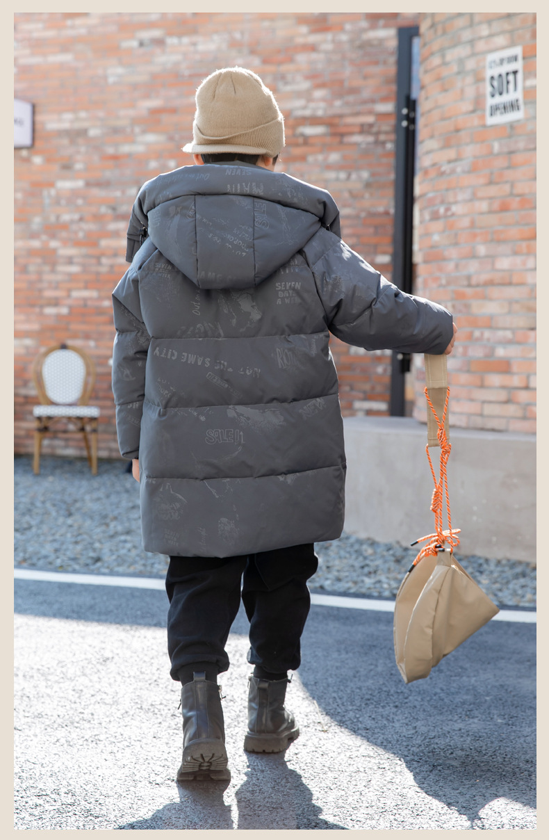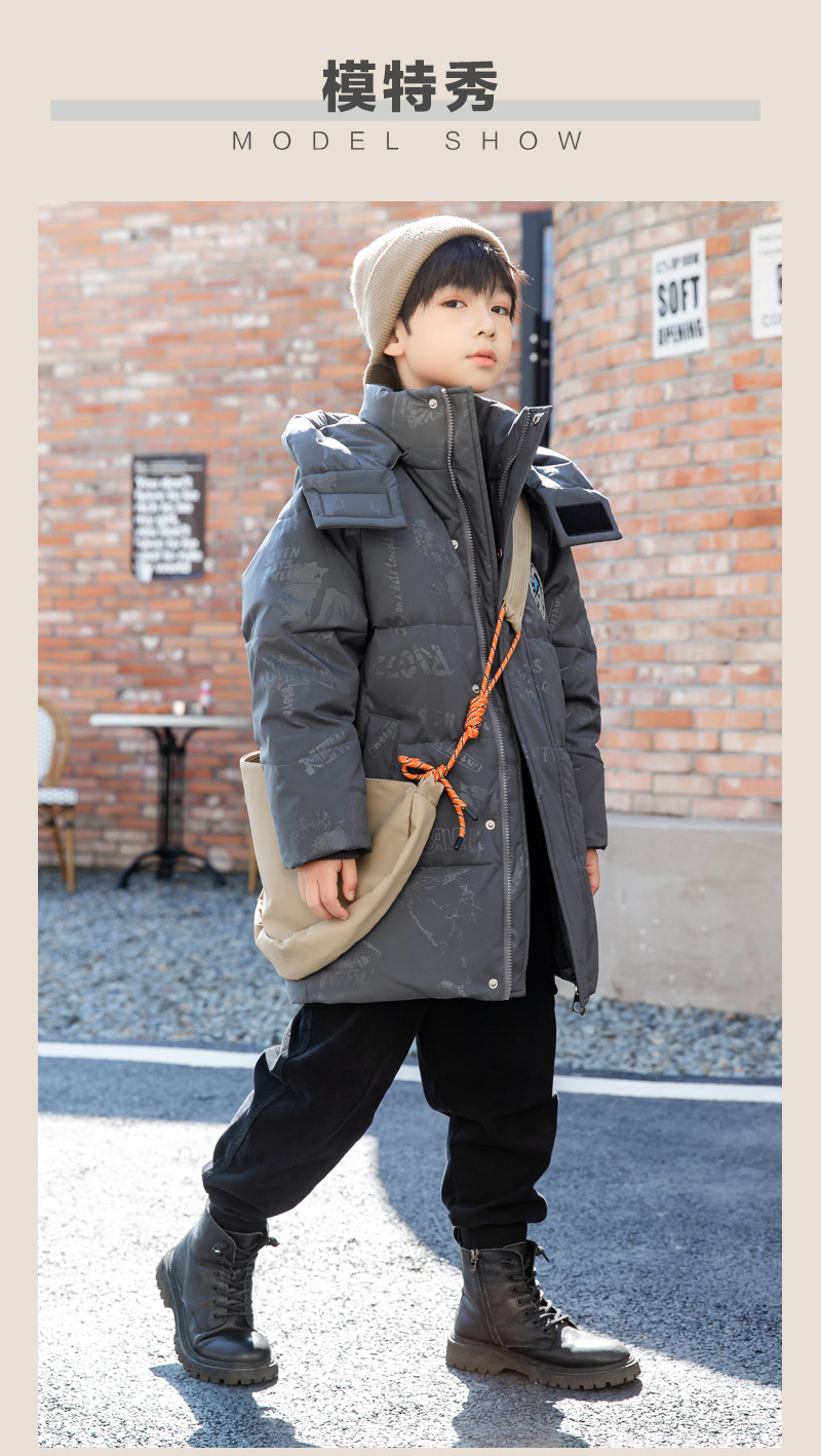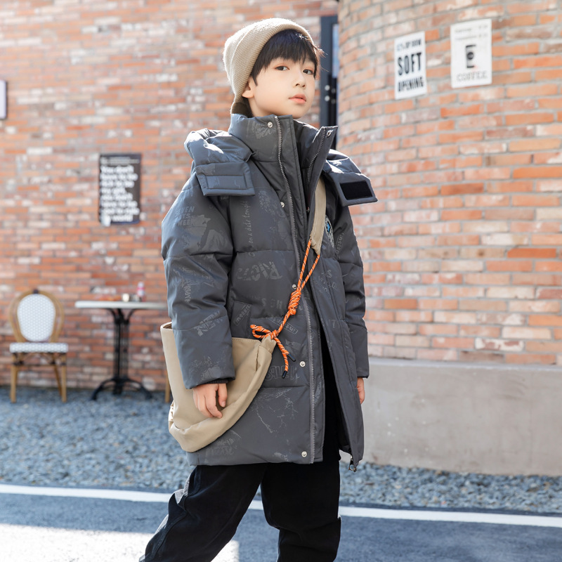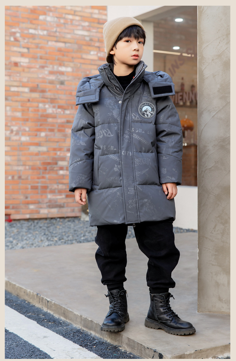 2023 새로운 서양 스타일 발라 어린이 다운 재킷 남아 중간 및 큰 어린이 긴 겨울 옷 아기 두꺼운 위장 재킷