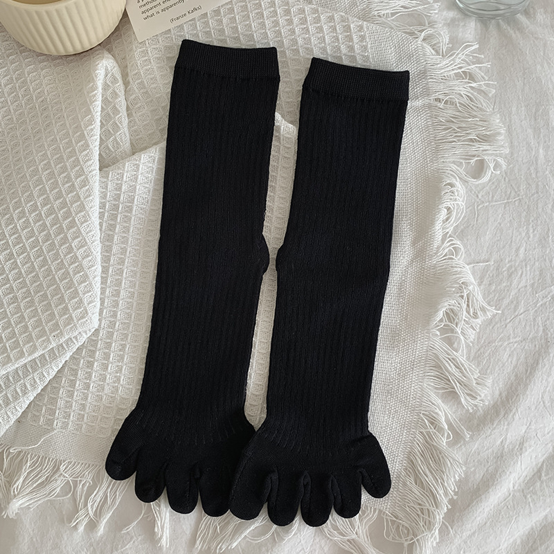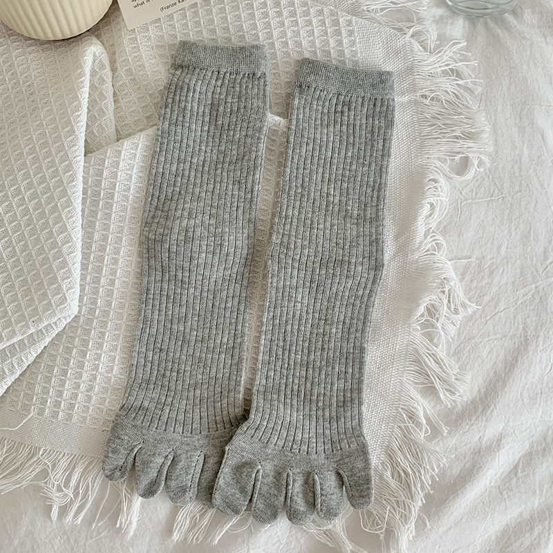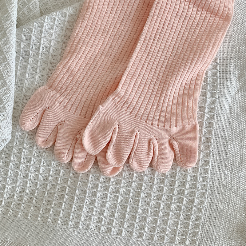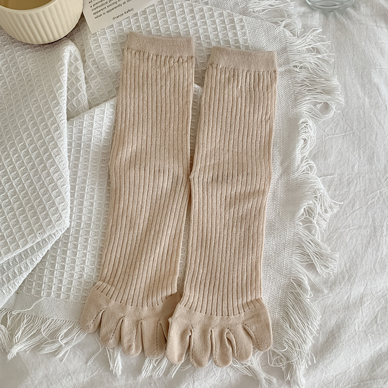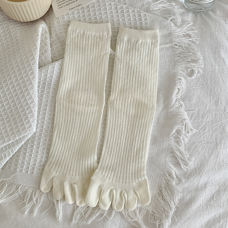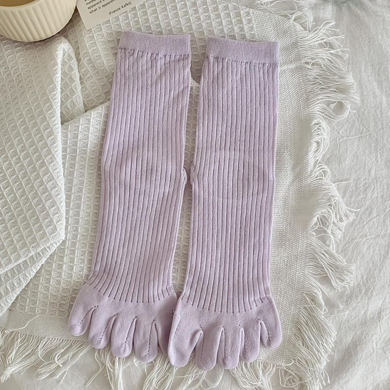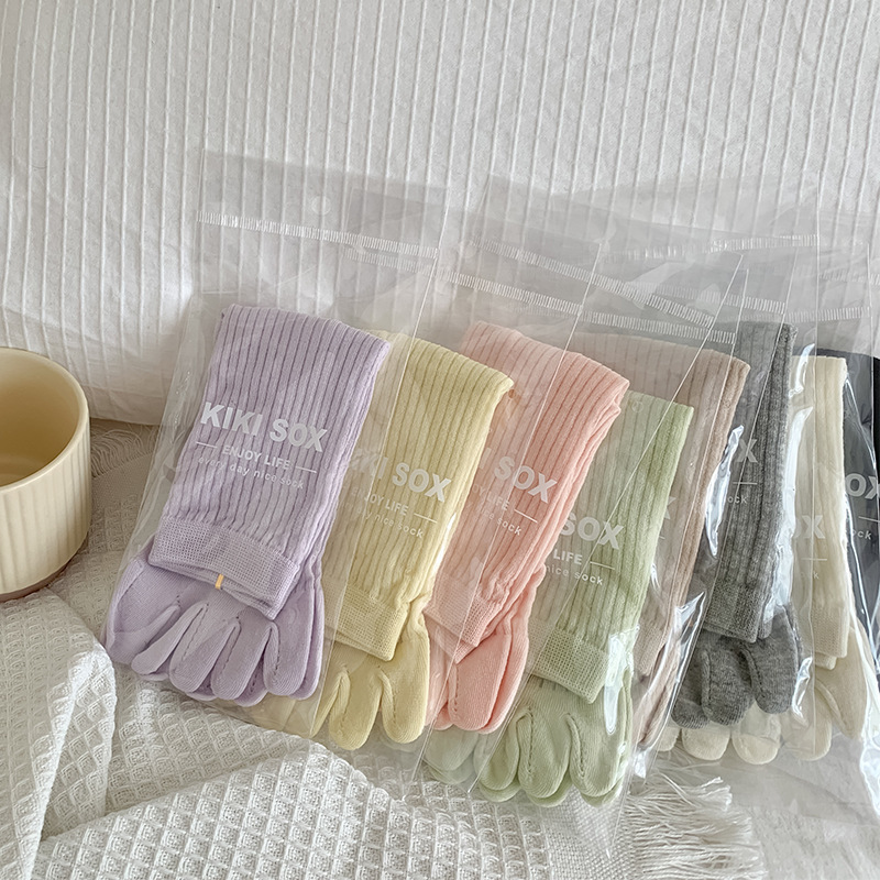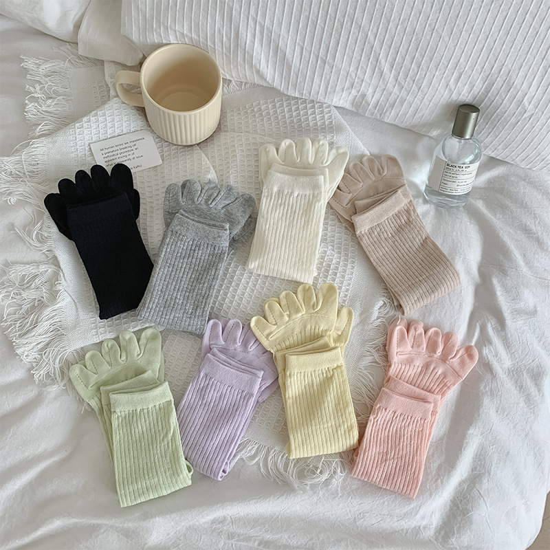 다섯 손가락 양말 여성용 일본식 스위트 솔리드 컬러 모든 매치 더미 양말 트렌디 한 봄과 가을 얇은 캔디 컬러 스플릿 토 중간 길이 양말