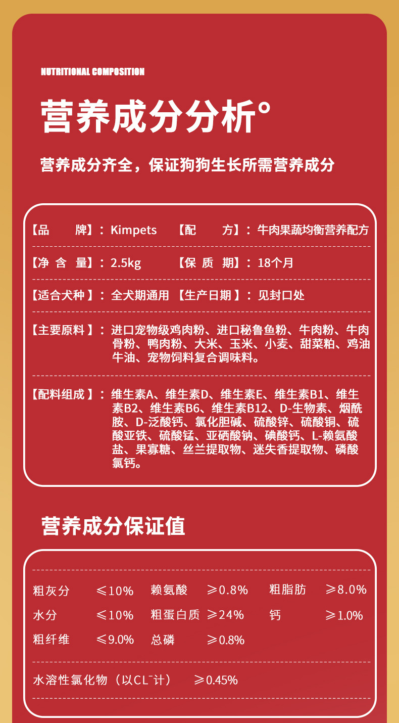 厂家直销宠物牛肉果蔬天然狗粮 泰迪金毛通用型成幼犬狗粮2.5kg