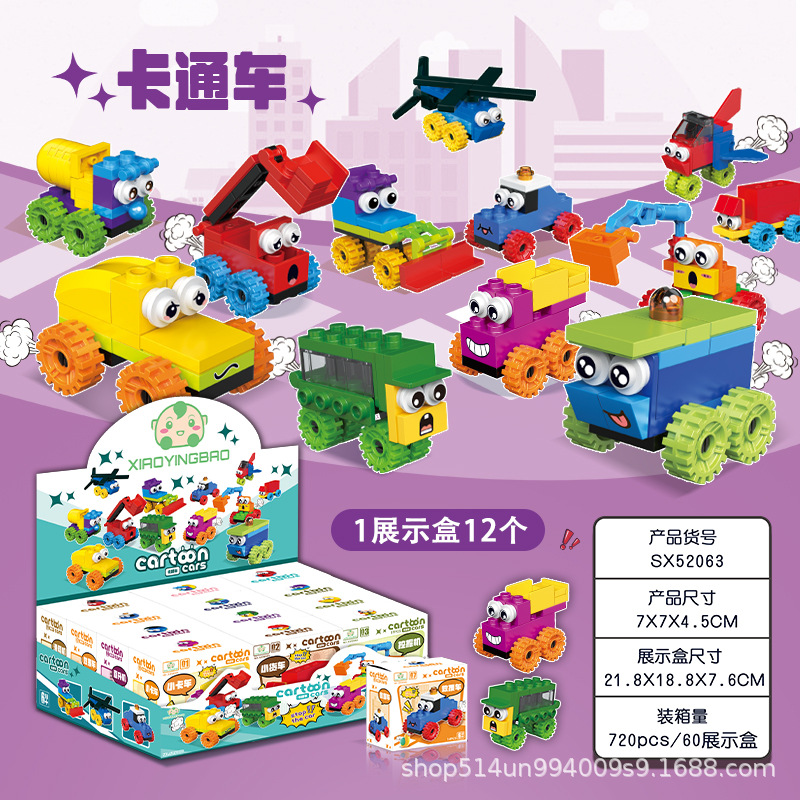 만화 자동차 빌딩 블록 음악 유치원 공학 자동차 높은 퍼즐 패치 워크 어린이 장난감 교통 작은 입자 도매스토어 가기