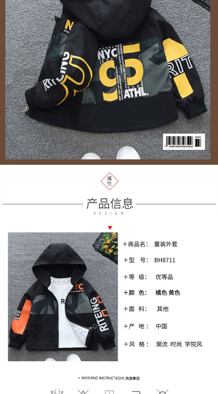 아동복 봄과 가을 소년 후드 윈드 브레이커 코트 재킷 충전 의류 어린이 중년 및 노인 어린이 작업복 여아 인터넷 연예인 대학 스타일스토어 가기