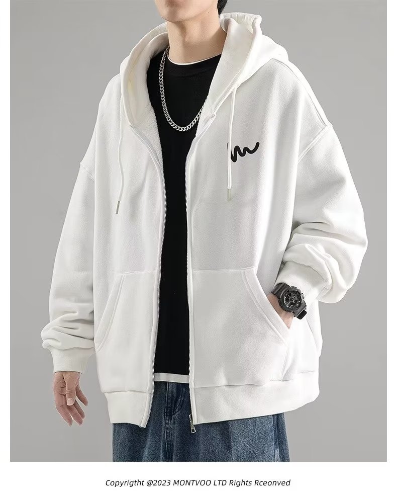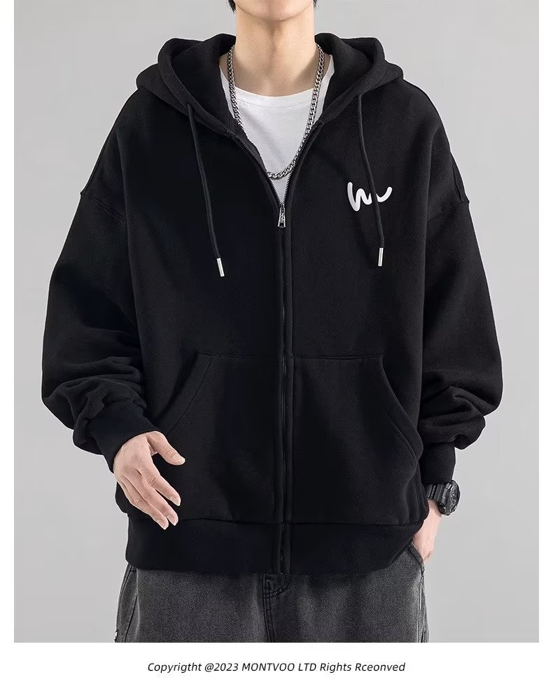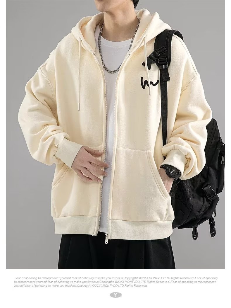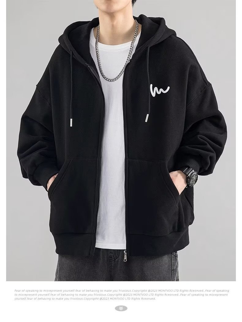 소년 가을과 겨울 패션 브랜드 느슨한 캐주얼 후드 단색 모든 일치 유행 커플 옷 플러스 사이즈 재킷 카디건 스웨터스토어 가기