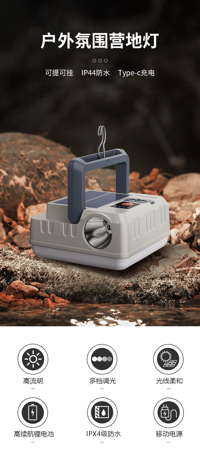 새로운 태양열 충전 야외 캠핑 조명 휴대용 교수형 야시장 조명 휴대용 텐트 조명 야외