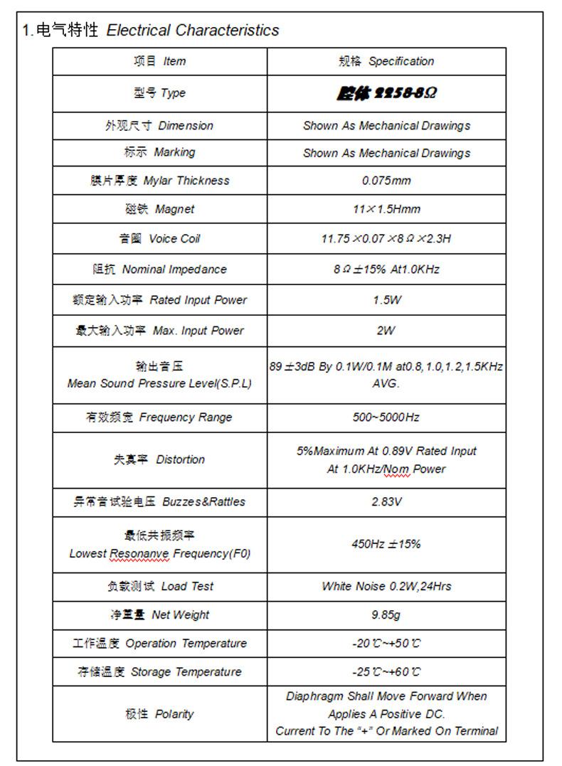 YZ-2258/5822 캐비티 혼 스피커 8 옴 2W 광고기 캐비티 혼 58*22*10mm스토어 가기