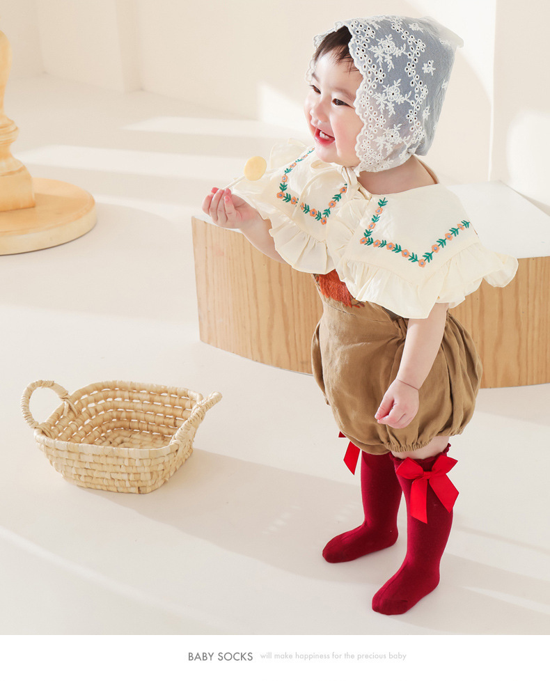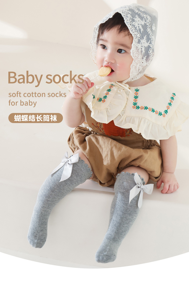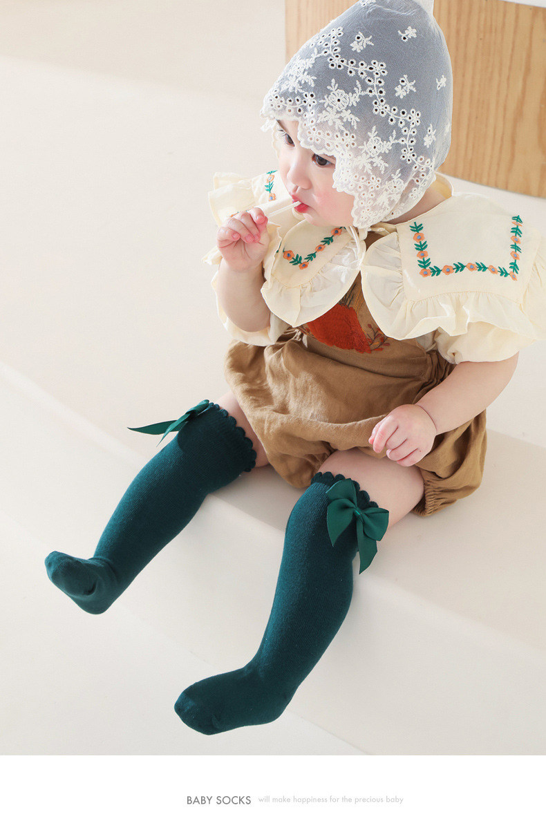크로스 보더 아기 양말 스페인어 아기 큰 활 원피스 소녀 학생 공주 양말 긴 배럴 느슨한 양말스토어 가기