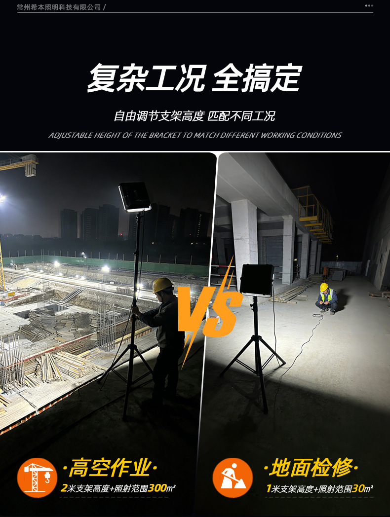 • 【충전 세트】 50W 충전식 조명 | 3-4시간 충전 | 2m 스탠드 | 리모컨 제어