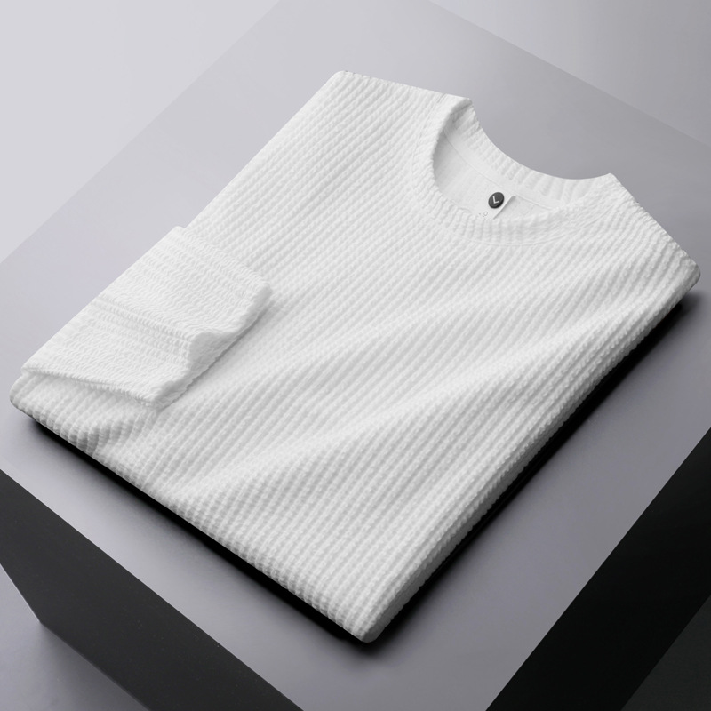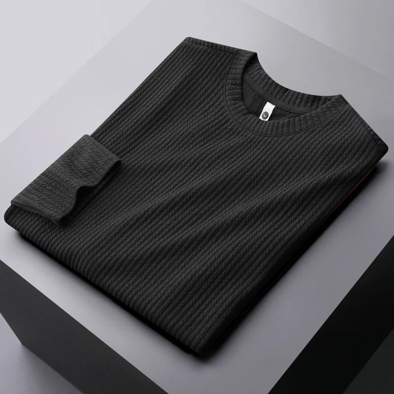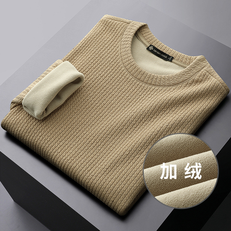 캐주얼 긴팔 티셔츠 남성용 텍스처 라운드넥 탑 가을 신상 무지 베이스 셔츠 플리스 안감 두꺼운 스웨트셔츠