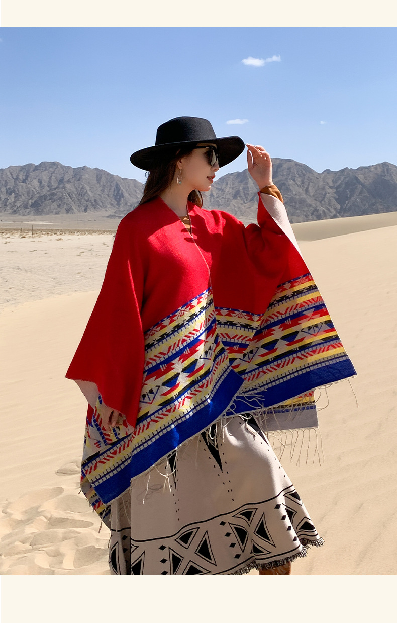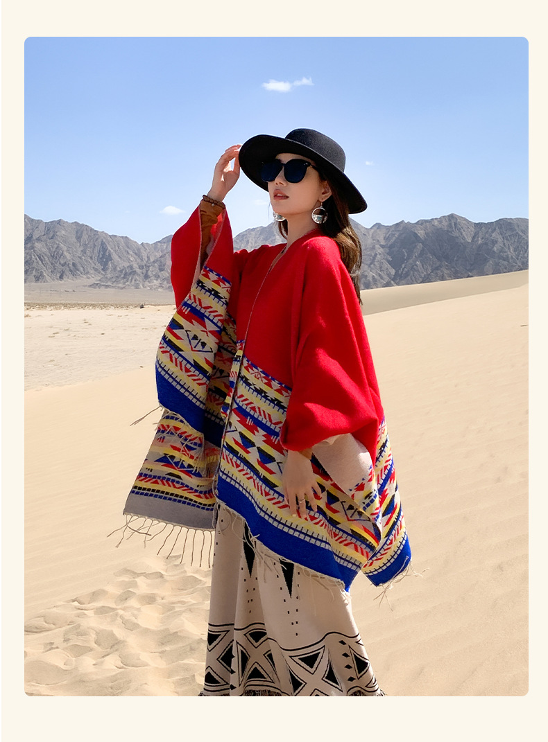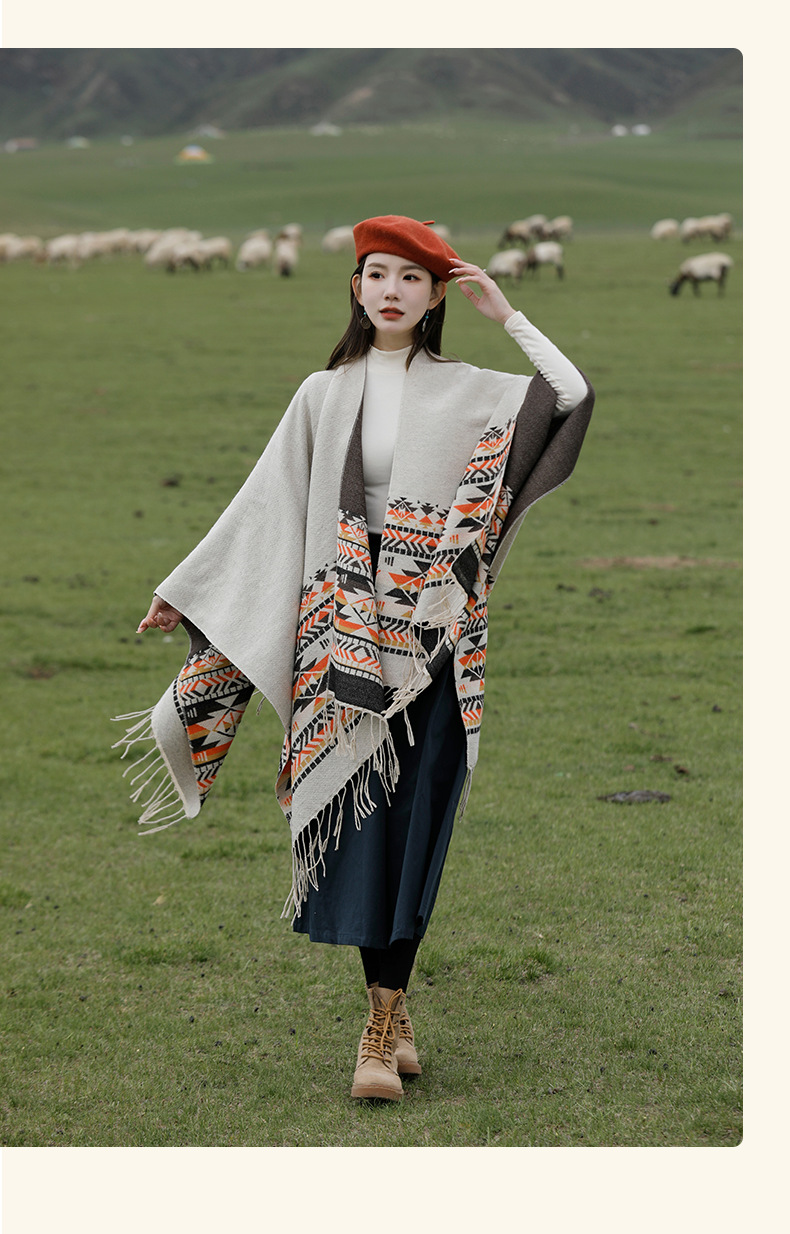 2023 새로운 색상 에스닉 스타일 숄 여성용 술 분할 두꺼운 따뜻한 망토 여행 스카프스토어 가기