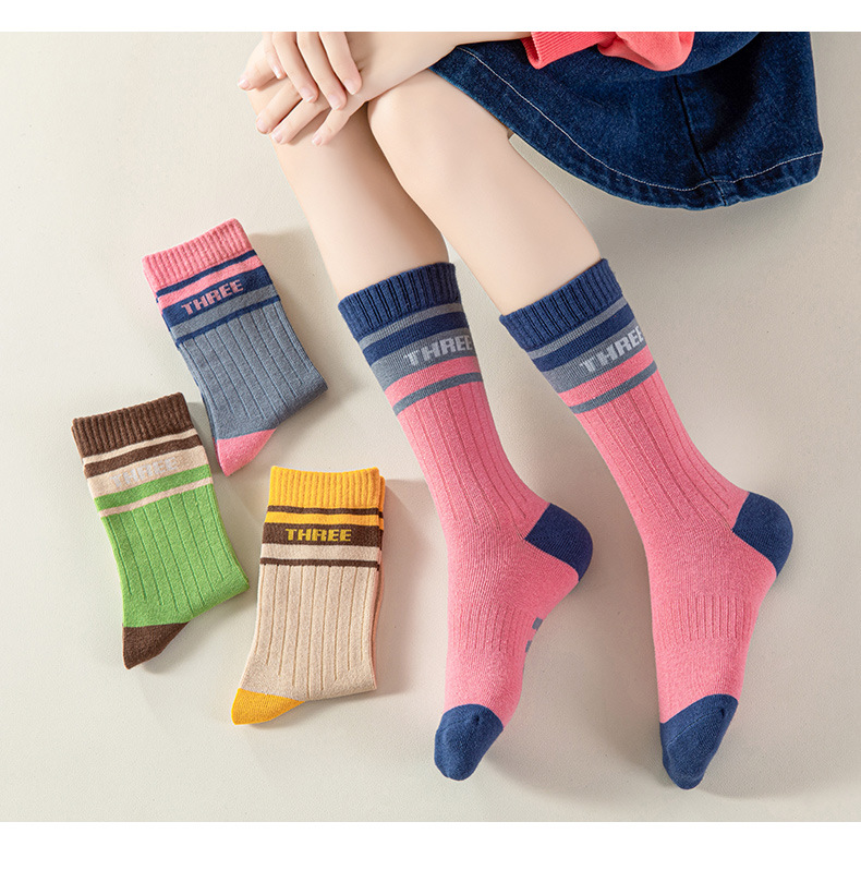 [4 쌍] 어린이 양말 봄과 가을 스포츠 유형 A 면 양말 학생 양말 가을과 겨울 중간 튜브 도매 드롭 배송스토어 가기