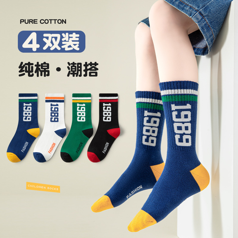 [4 쌍] 어린이 양말 봄과 가을 스포츠 유형 A 면 양말 학생 양말 가을과 겨울 중간 튜브 도매 드롭 배송