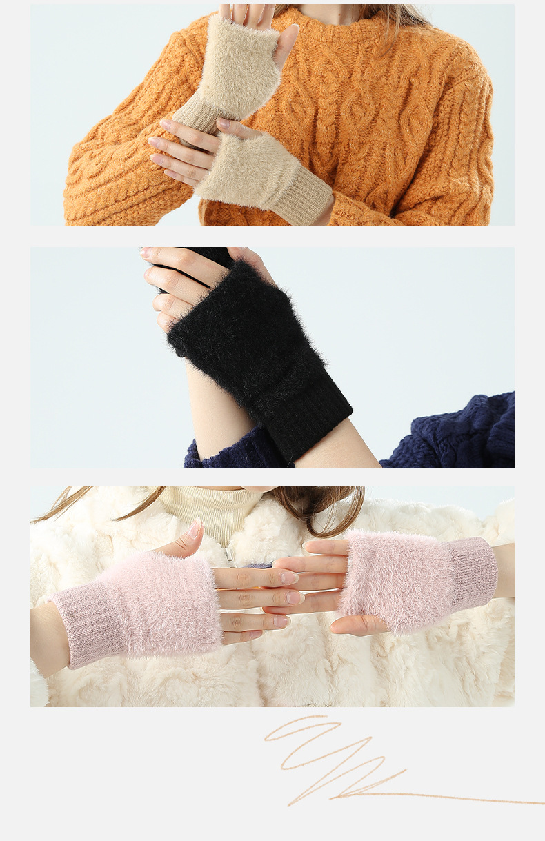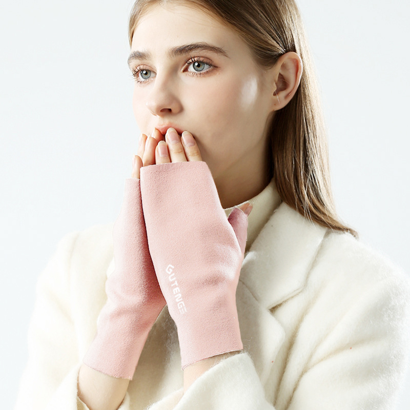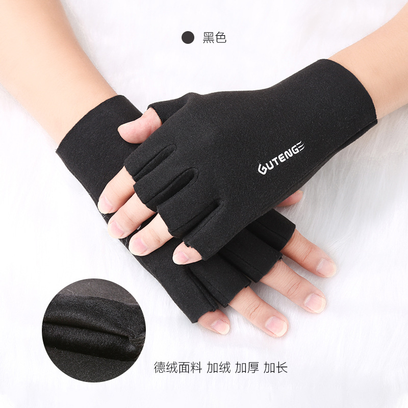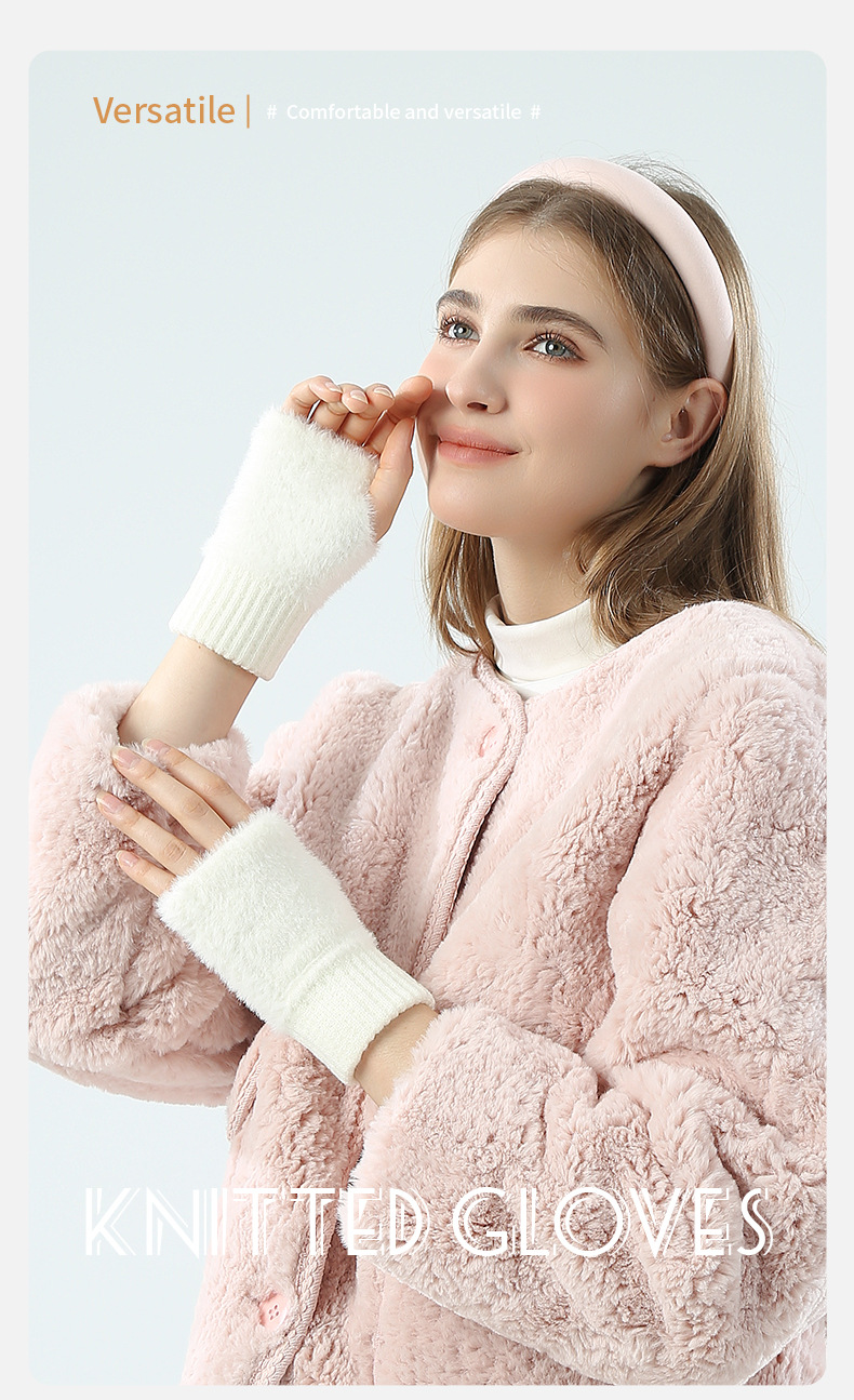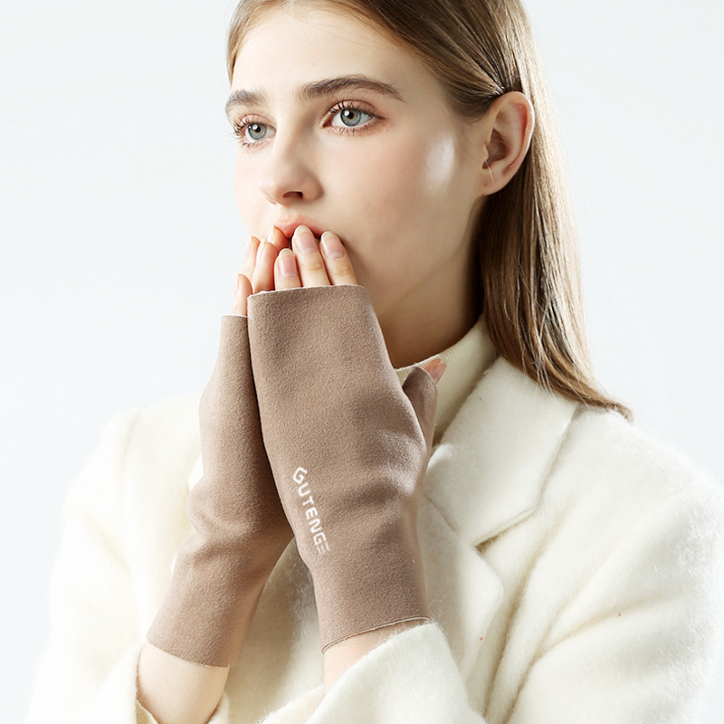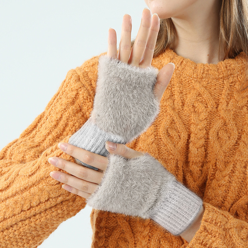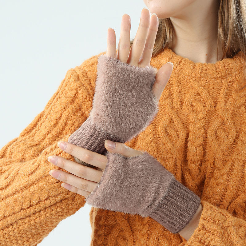 도매 여성용 장갑 가을 겨울 플러시 손가락 없는 니트 장갑 반손가락 사무실 타이핑용 플러시 방한 장갑스토어 가기