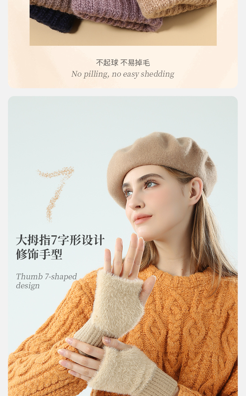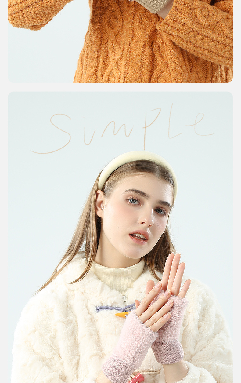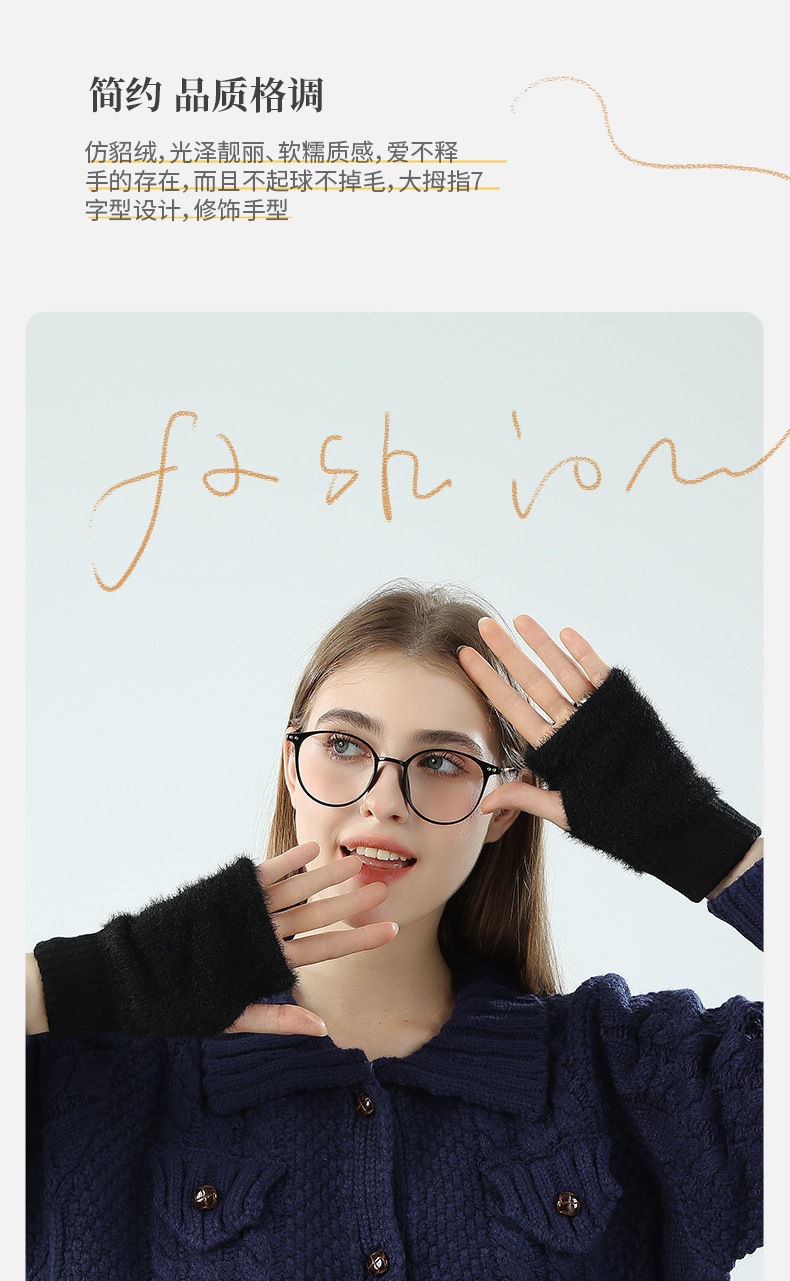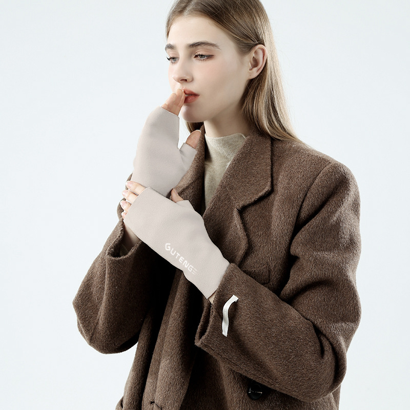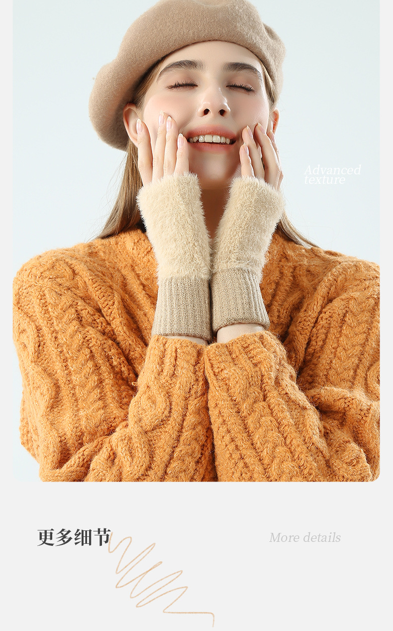 도매 여성용 장갑 가을 겨울 플러시 손가락 없는 니트 장갑 반손가락 사무실 타이핑용 플러시 방한 장갑스토어 가기