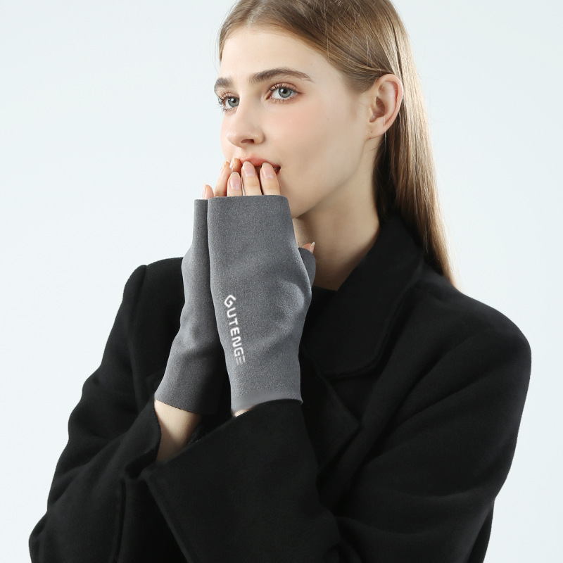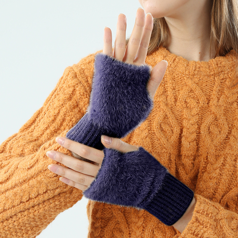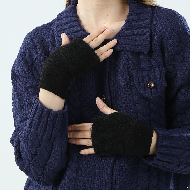 도매 여성용 장갑 가을 겨울 플러시 손가락 없는 니트 장갑 반손가락 사무실 타이핑용 플러시 방한 장갑