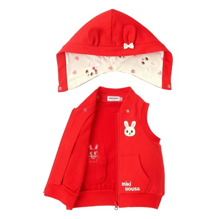 [빠른 출하] 23 가을과 겨울 타이드 브랜드 하이 세트 아동복 MIKI 베어 토끼 후드 아동 면 컬러 매칭 말