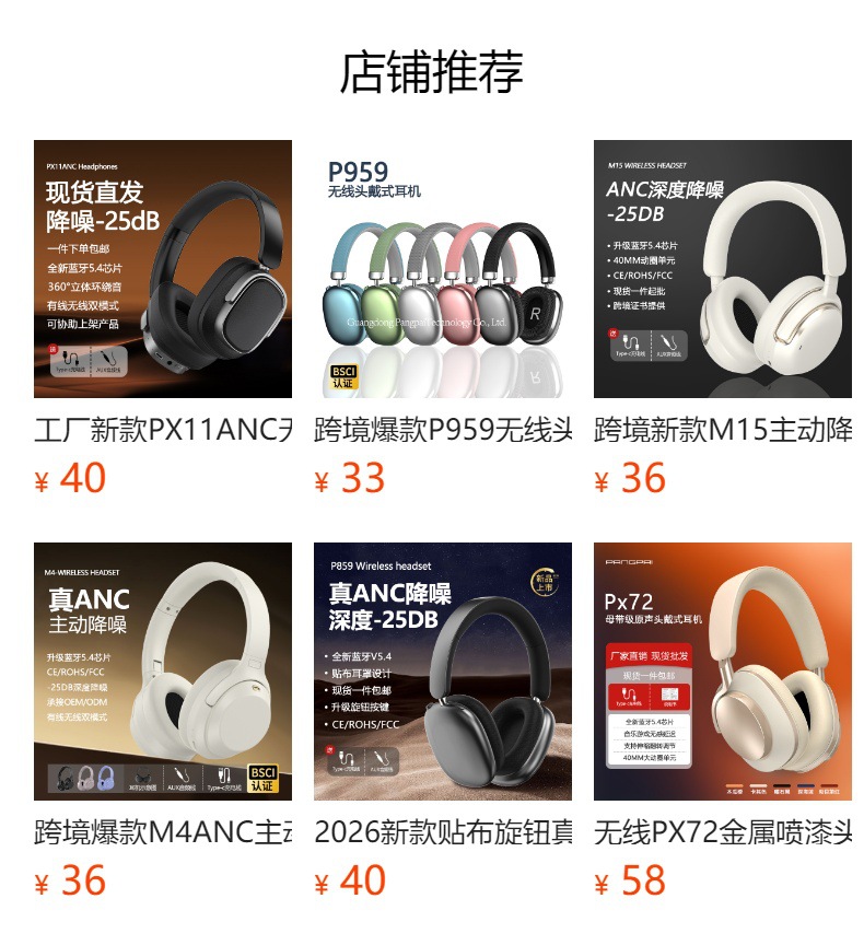 국경 간 새로운 P3965ANC 능동형 소음 감소 진정한 무선 헤드 장착형 Bluetooth 헤드셋 접이식 휴대 전화 개인 모델 헤드셋스토어 가기