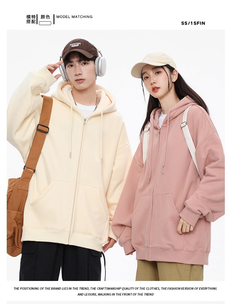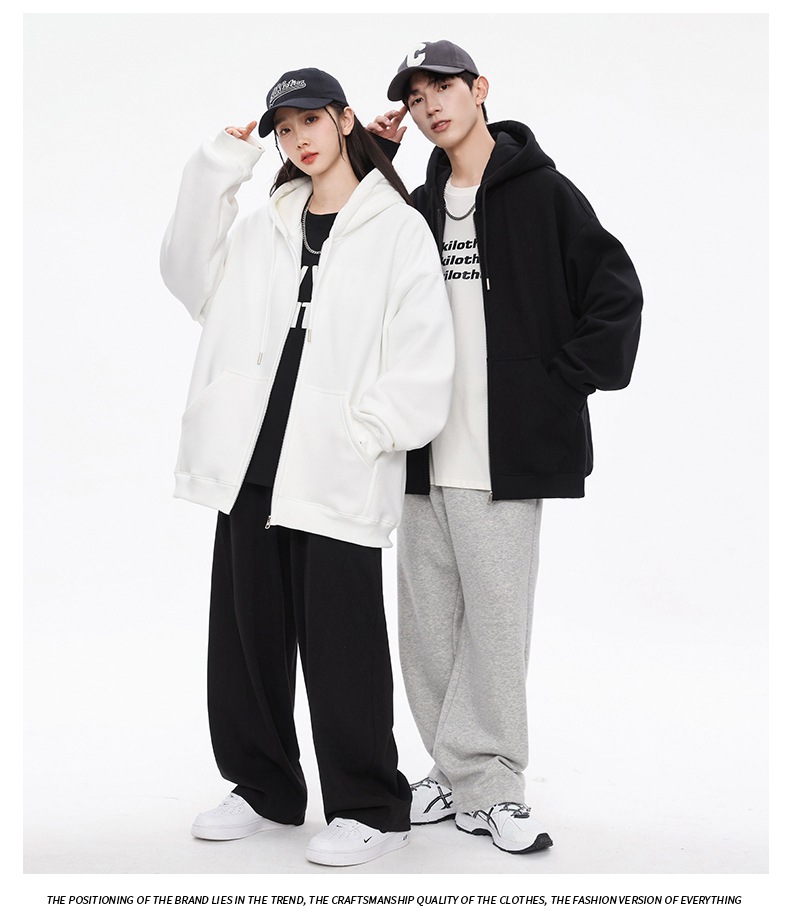 2024 커플 가을 가디건 스웨트셔츠 남성용 후드 두꺼운 미국 스타일 헤비웨이트 트렌디 브랜드 재킷 남성 청소년 상의스토어 가기