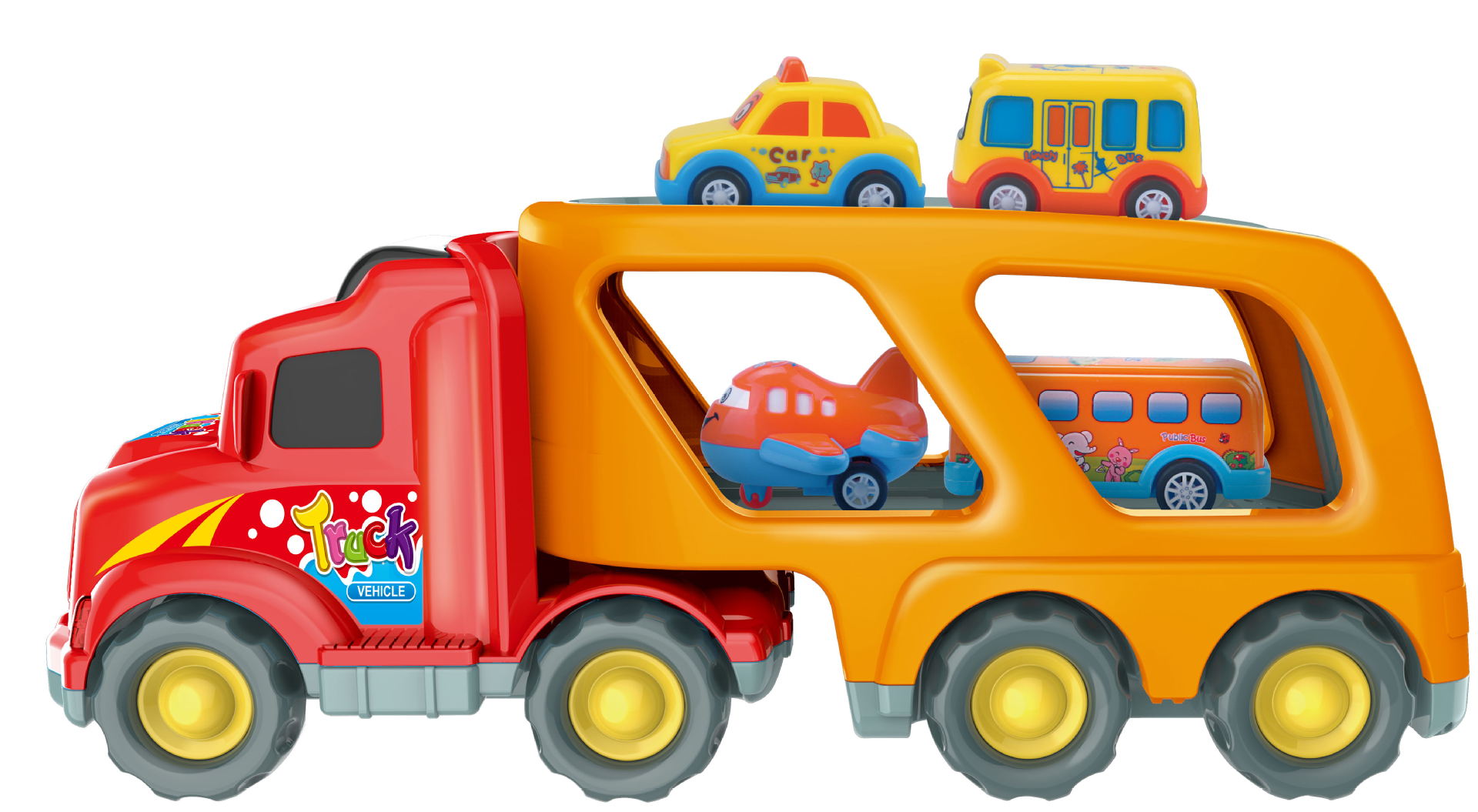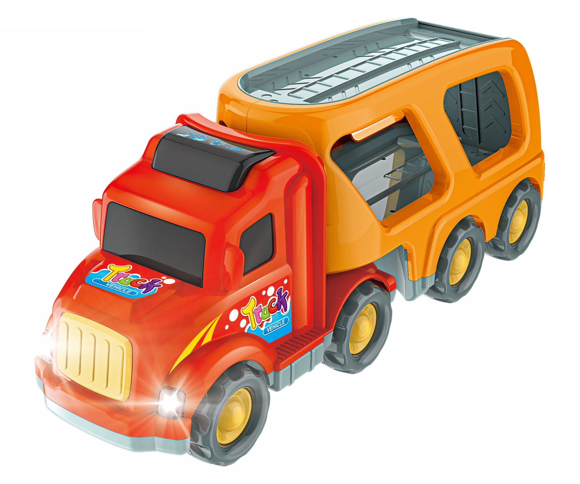 국경을 넘는 인기 상품 어린이용 이중층 운송 트럭 관성식 사운드&라이트 트레일러카 애니메이션 소년 만화 장난감 자동차 세트스토어 가기