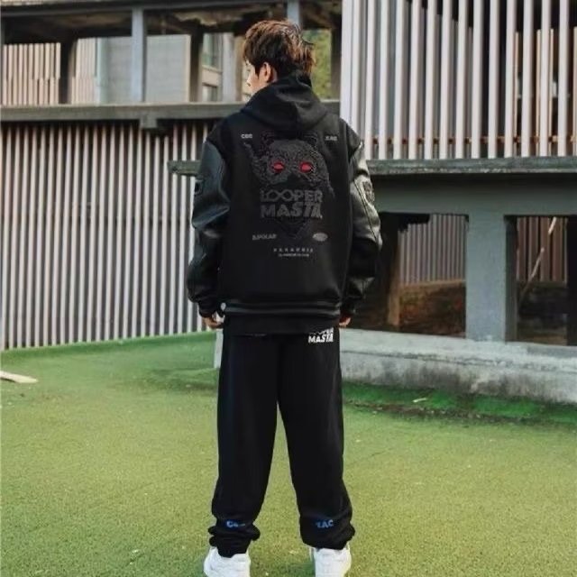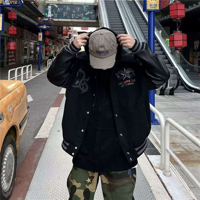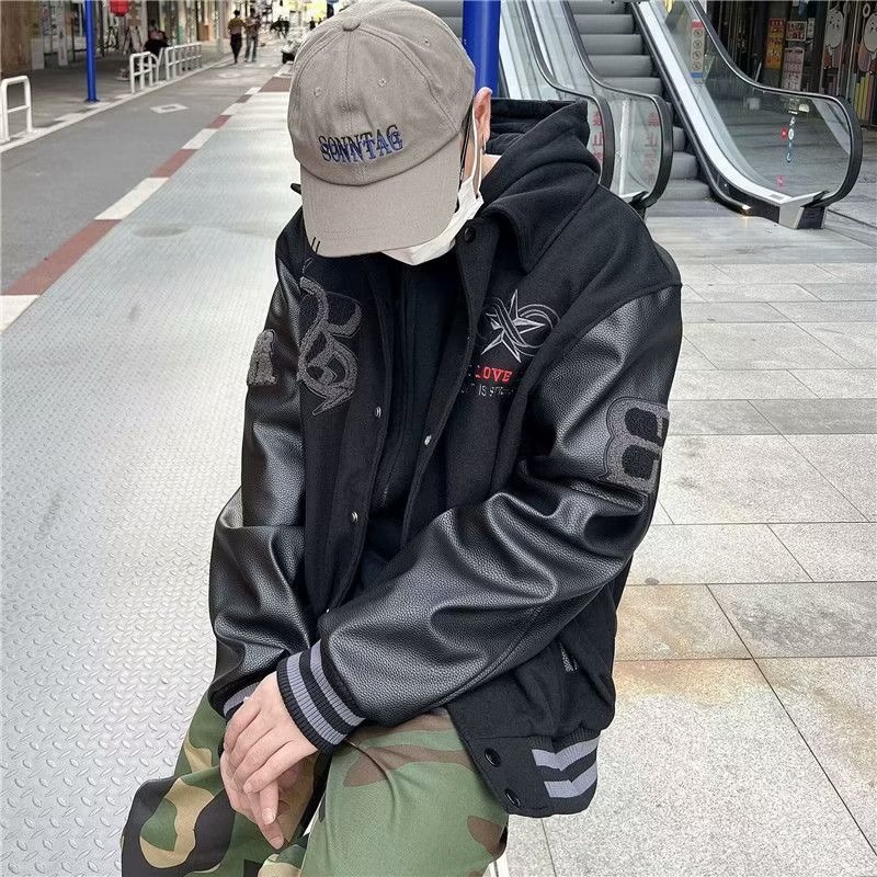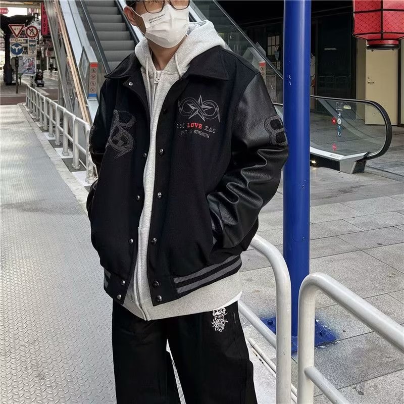 아메리칸 스타일 블록버스터 전국 트렌디 브랜드 야구 세트 남성 봄과 가을 마스크 일반 자수 PU 가죽 코트 하이 스트리트 힙합 재킷 유행